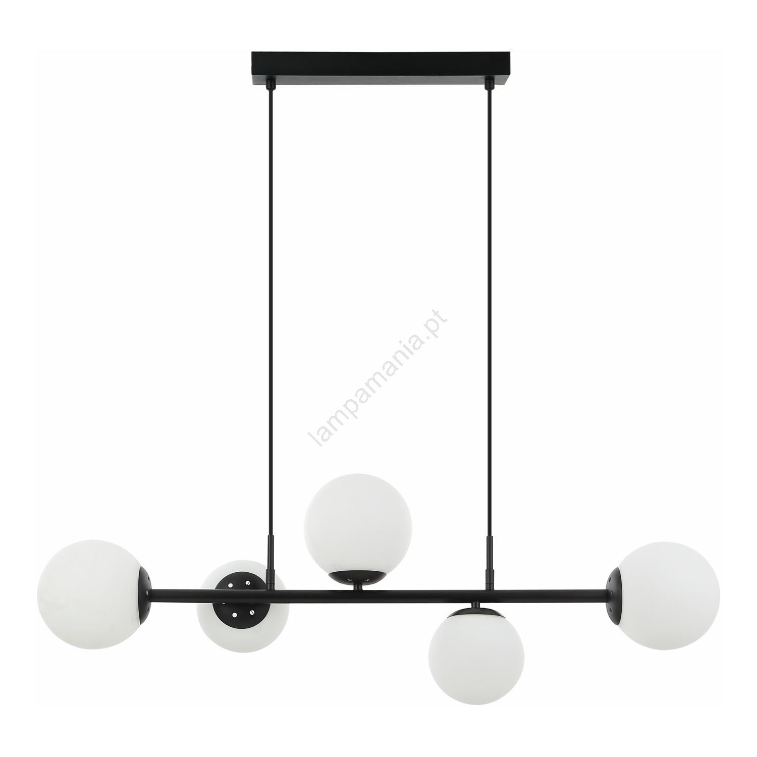 Lustre suspenso por cabo MADDIE 5xE14/5W/230V preto caracteriza-se por um design agradável e funcional.  Uma lâmpada com casquilho E14 é adequada para a iluminação Aqui, pode comprar outras lâmpadas a preços vantajosos. Terá um complemento interessante para a sua casa.