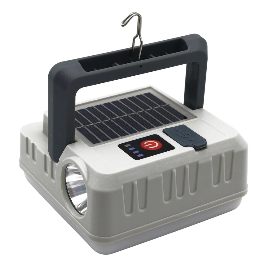 Lâmpada solar recarregável LED dimmerizável com função powerbank LED/1W/5,5V 8000K IPX4 1200 mAh cinza