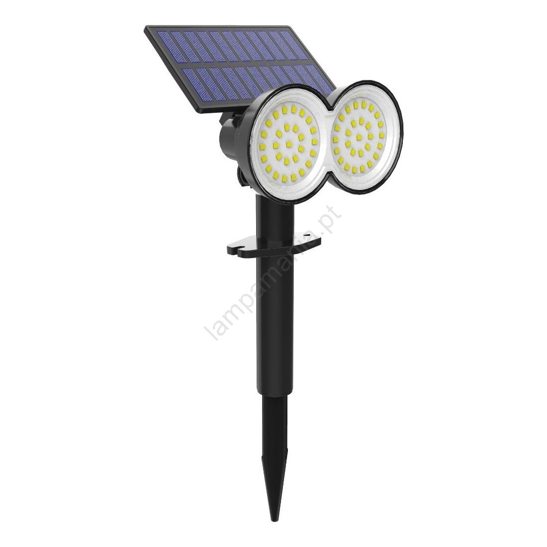 • Luminária solar LED para jardim com estaca para fixação no solo.