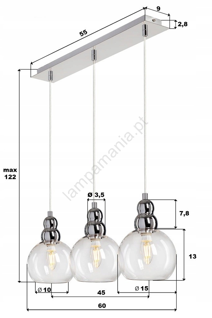 • Candeeiro suspenso AKSO 3xE14/40W/230V cromado mate