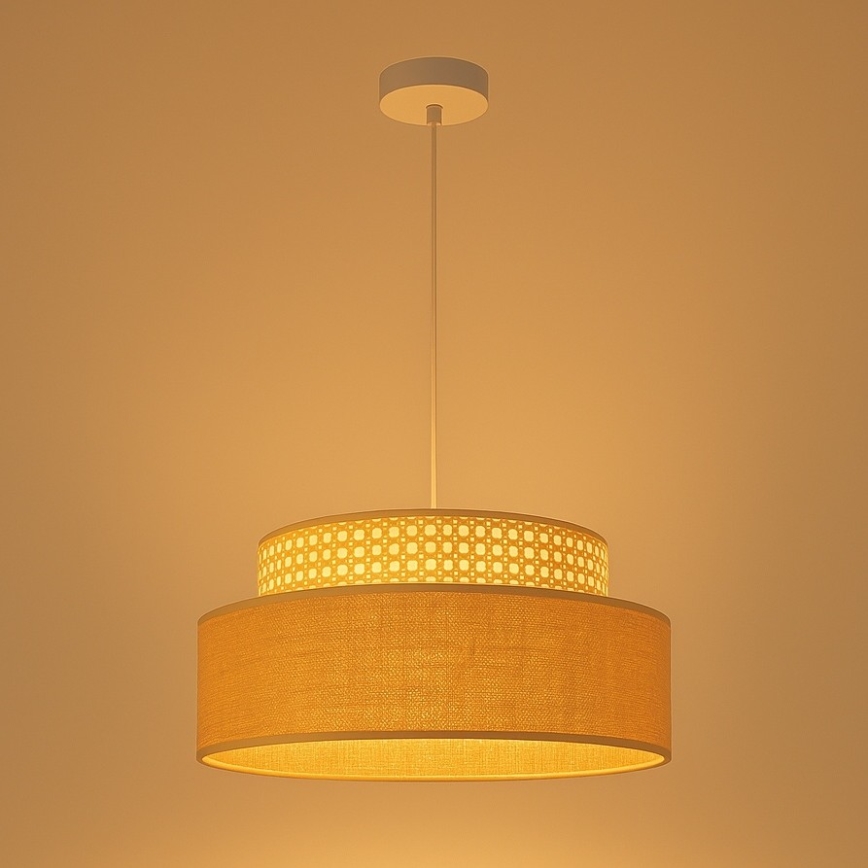 • Candeeiro pendente BOHO com cabo 1xE27/60W/230V Ø 40 cm branco/juta