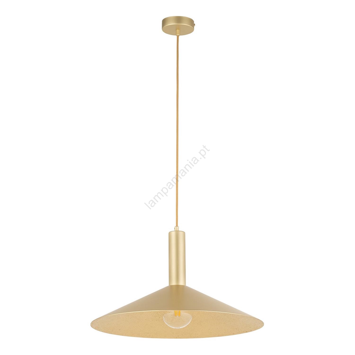 Candeeiro suspenso CAPRI 1xE27/15W/230V diâmetro 50 cm dourado caracteriza-se por um design agradável e funcional.  Uma lâmpada com casquilho E27 é adequada para a iluminação Aqui, pode comprar outras lâmpadas a preços vantajosos. Terá um complemento interessante para a sua casa.