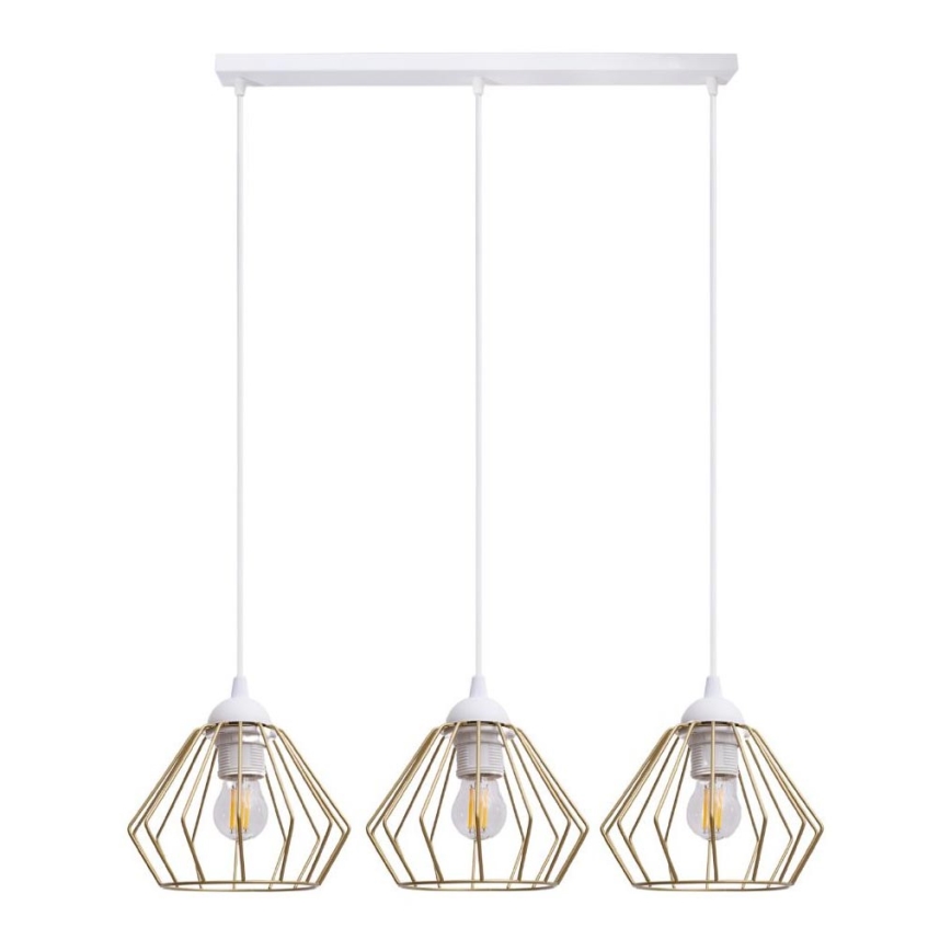 Candeeiro suspenso CEED GOLD 3xE27/60W/230V branco/dourado