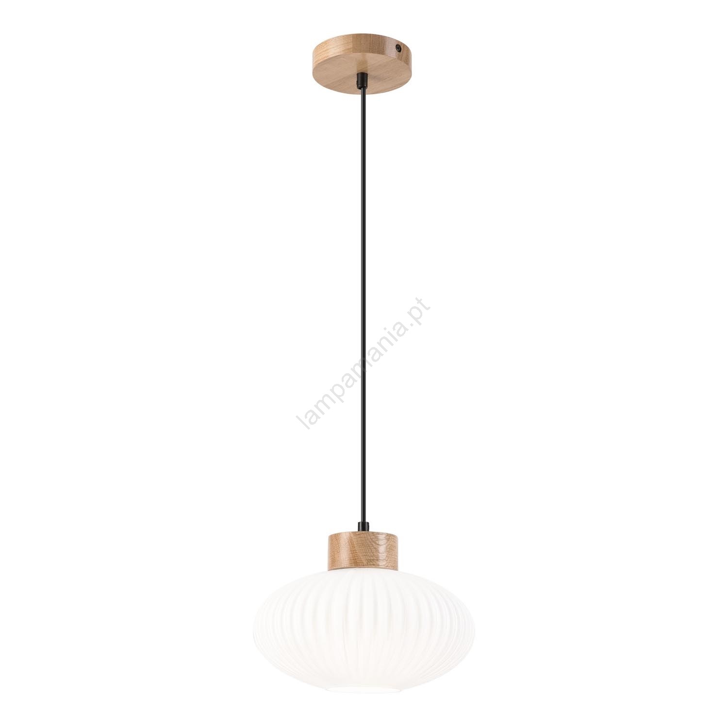Candeeiro suspenso HARMONY 1xE27/15W/230V diâmetro 25 cm branco/carvalho caracteriza-se por um design agradável e funcional.  Uma lâmpada com casquilho E27 é adequada para a iluminação Aqui, pode comprar outras lâmpadas a preços vantajosos. Terá um complemento interessante para a sua casa.