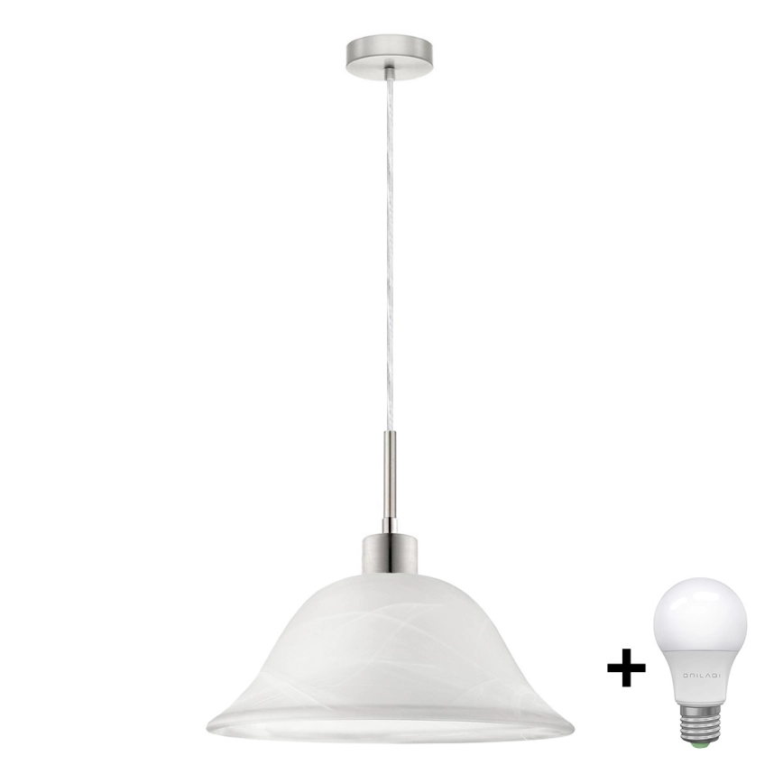 Candeeiro suspenso LED 1xE27/60W/230V branco caracteriza-se por um design agradável e funcional.  Uma lâmpada com casquilho E27 é adequada para a iluminação Aqui, pode comprar outras lâmpadas a preços vantajosos. Terá um complemento interessante para a sua casa.