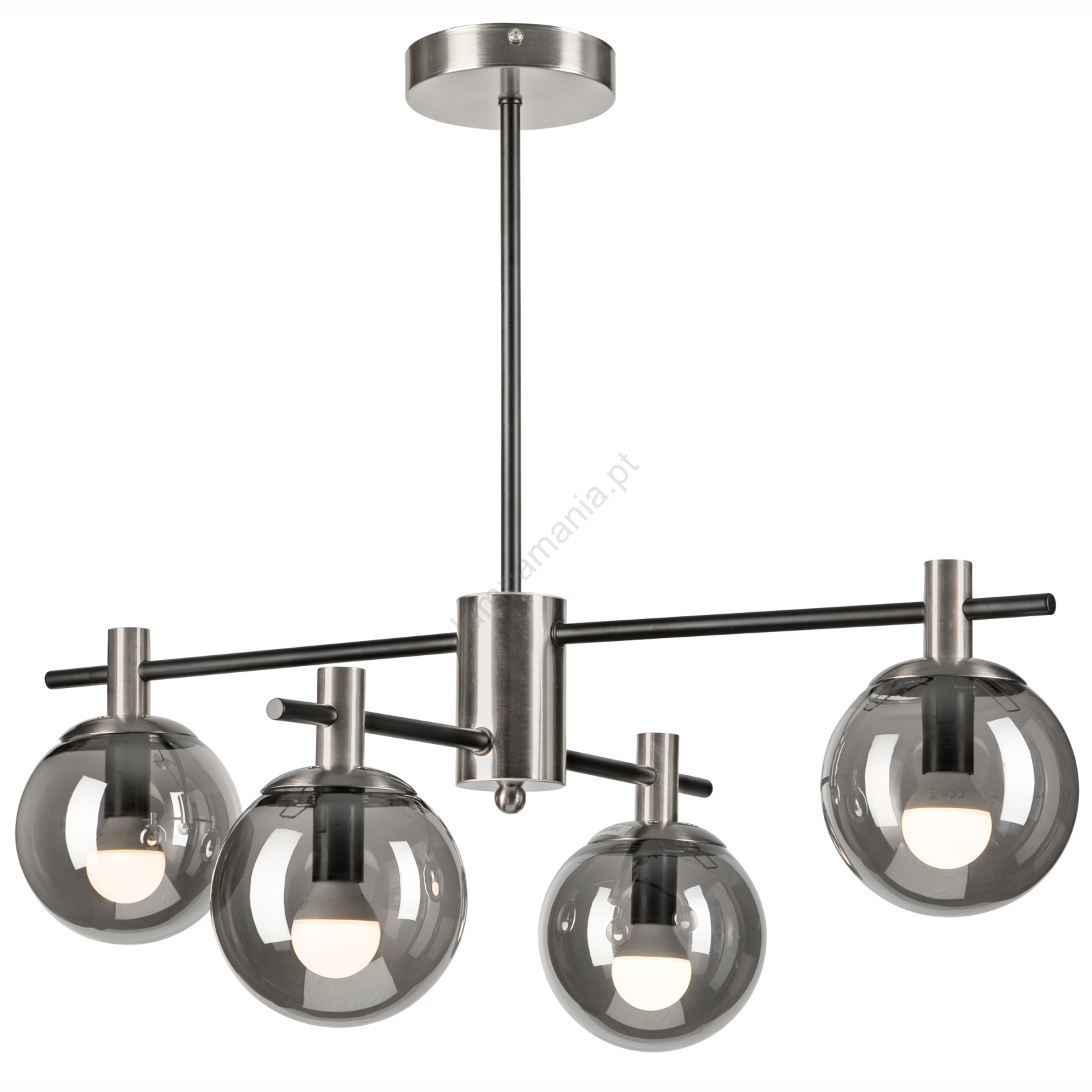 Candeeiro suspenso LILOU 4xE14/5W/230V cromado mate/fumado caracteriza-se por um design agradável e funcional.  Uma lâmpada com casquilho E14 é adequada para a iluminação Aqui, pode comprar outras lâmpadas a preços vantajosos. Terá um complemento interessante para a sua casa.