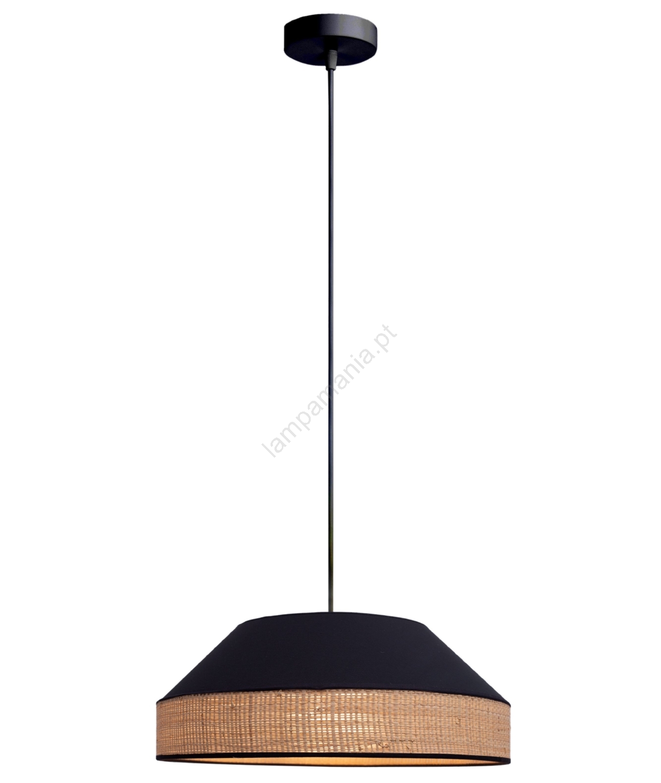 Candeeiro suspenso MANISO 1xE27/60W/230V diâmetro 45 cm preto/bege caracteriza-se por um design agradável e funcional.  Uma lâmpada com casquilho E27 é adequada para a iluminação Aqui, pode comprar outras lâmpadas a preços vantajosos. Terá um complemento interessante para a sua casa.