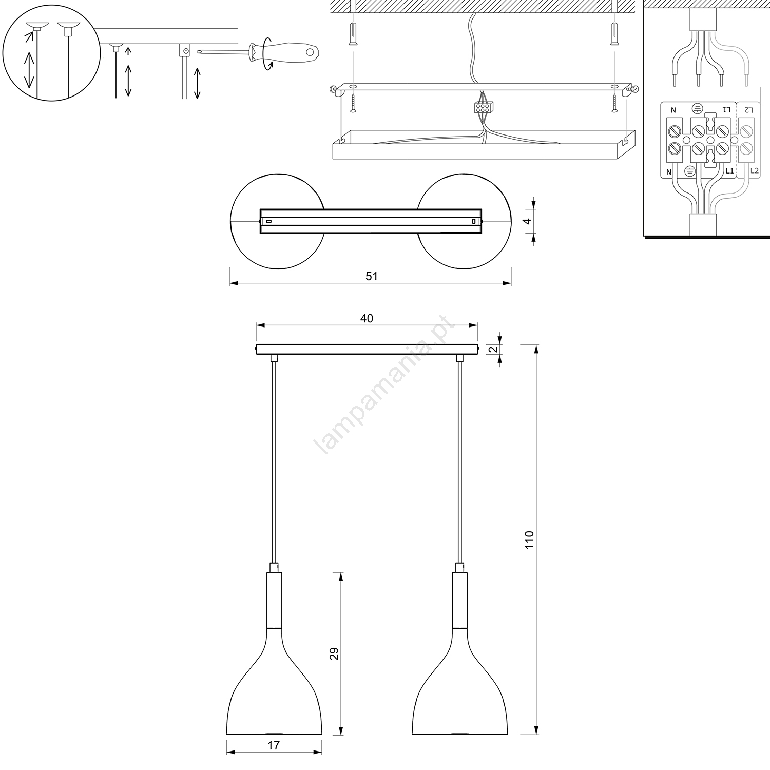 Candeeiro suspenso NOAK 2xE27/15W/230V bege/dourado caracteriza-se por um design agradável e funcional.  Uma lâmpada com casquilho E27 é adequada para a iluminação Aqui, pode comprar outras lâmpadas a preços vantajosos. Terá um complemento interessante para a sua casa.