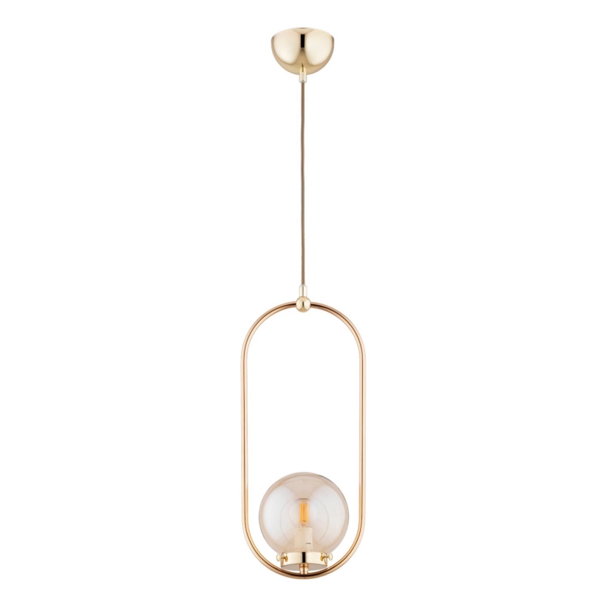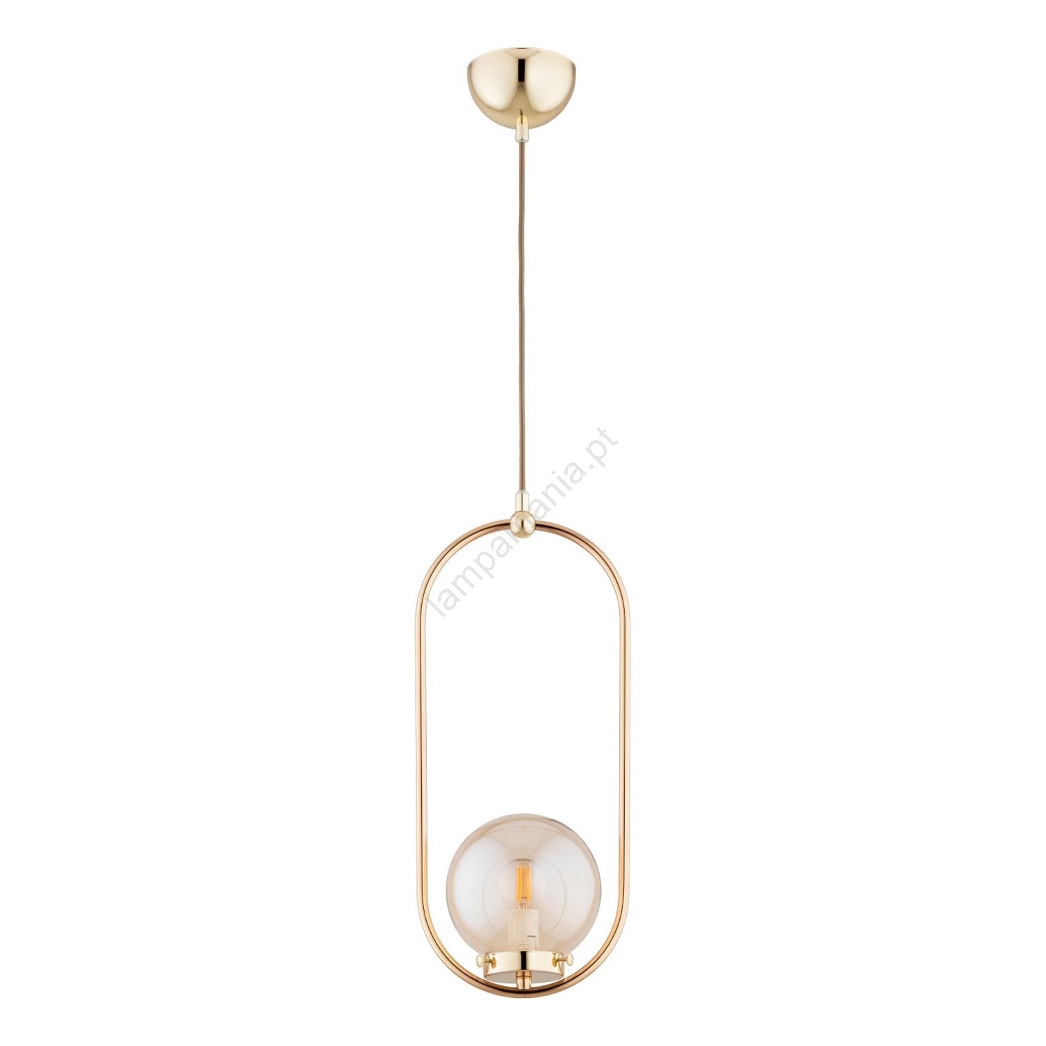 Candeeiro suspenso OVAL 1xE14/10W/230V dourado caracteriza-se por um design agradável e funcional.  Uma lâmpada com casquilho E14 é adequada para a iluminação Aqui, pode comprar outras lâmpadas a preços vantajosos. Terá um complemento interessante para a sua casa.