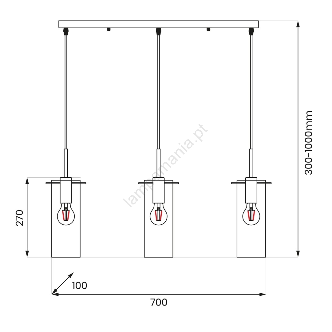 Candeeiro suspenso PADOVA 3xE27/15W/230V preto