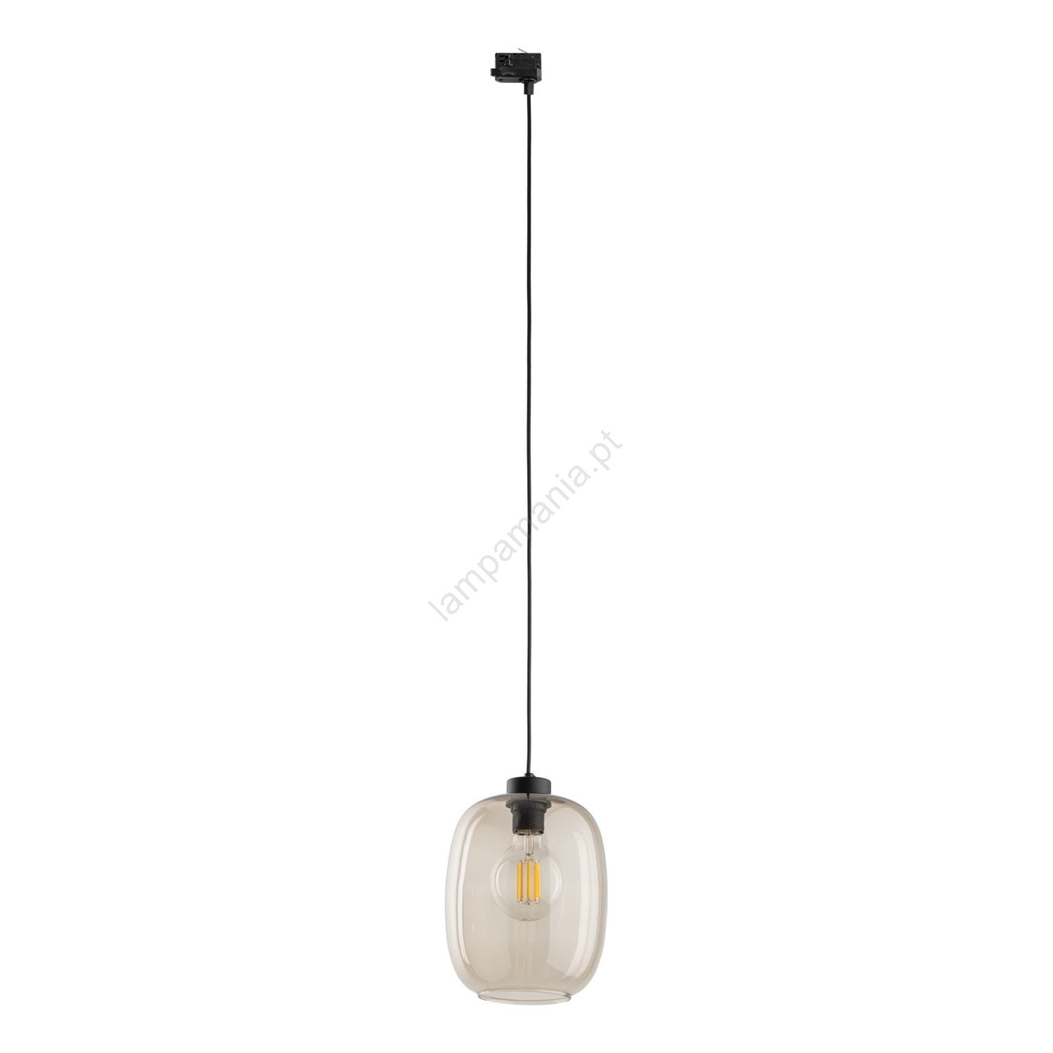 Candeeiro suspenso para sistema de carril trifásico ELIO 1xE27/15W/230V preto/fumado bege caracteriza-se por um design agradável e funcional.  Uma lâmpada com casquilho E27 é adequada para a iluminação Aqui, pode comprar outras lâmpadas a preços vantajosos. Terá um complemento interessante para a sua casa.