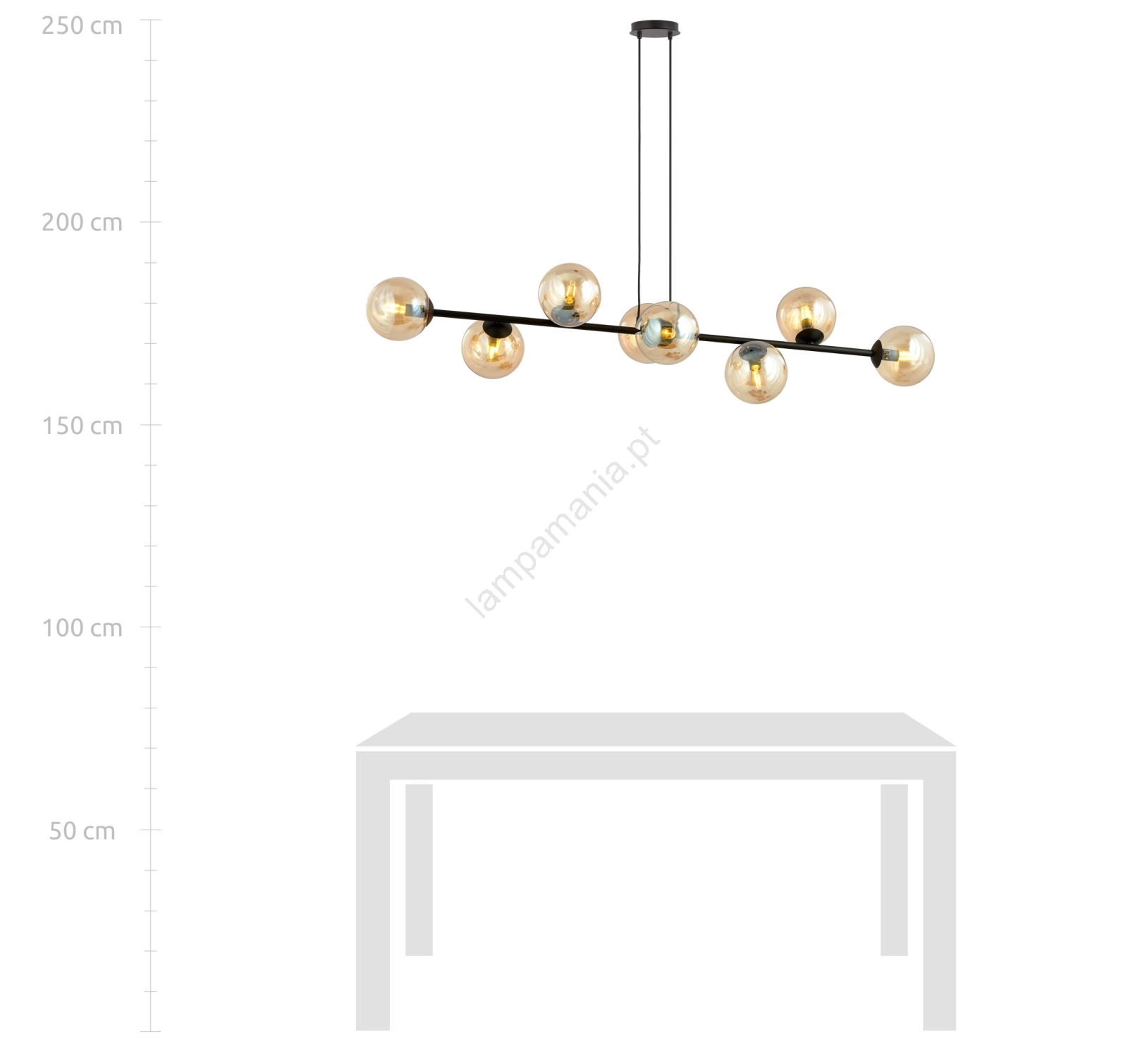 Candeeiro suspenso ROSSI 8xE14/10W/230V preto/bege caracteriza-se por um design agradável e funcional.  Uma lâmpada com casquilho E14 é adequada para a iluminação Aqui, pode comprar outras lâmpadas a preços vantajosos. Terá um complemento interessante para a sua casa.