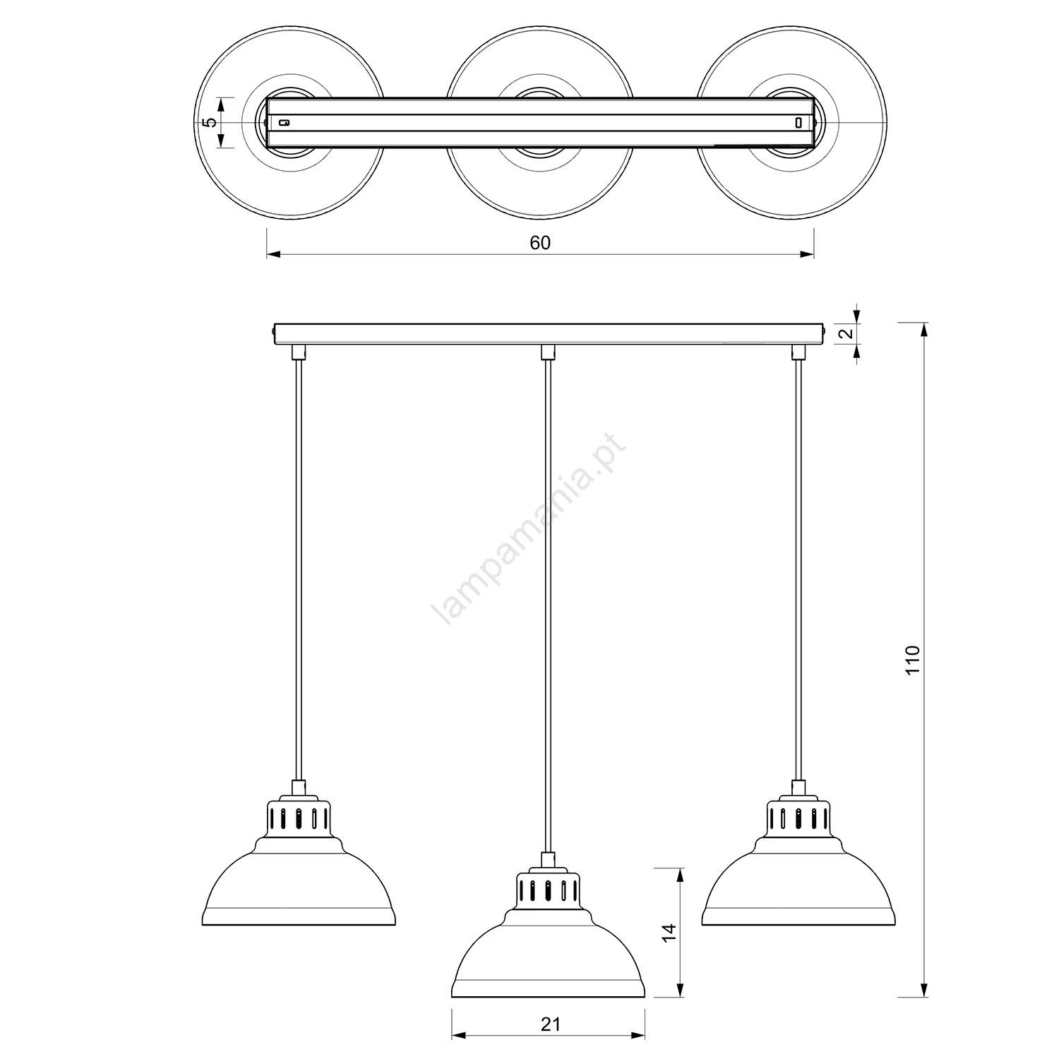 • Candeeiro suspenso SVEN 3xE27/15W/230V branco