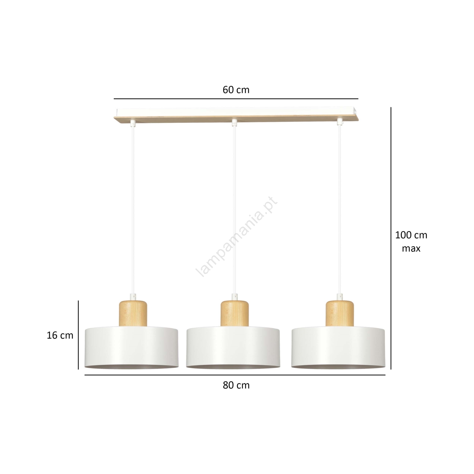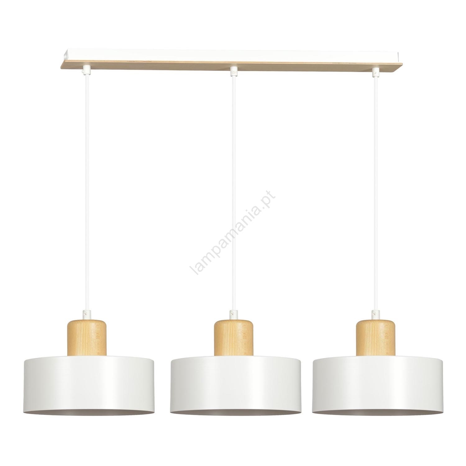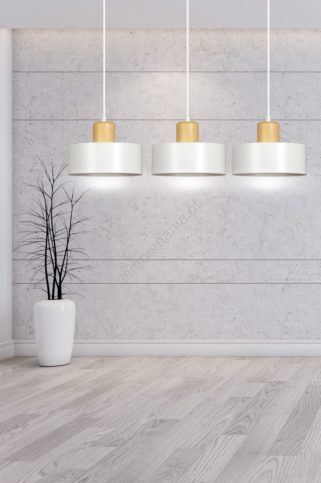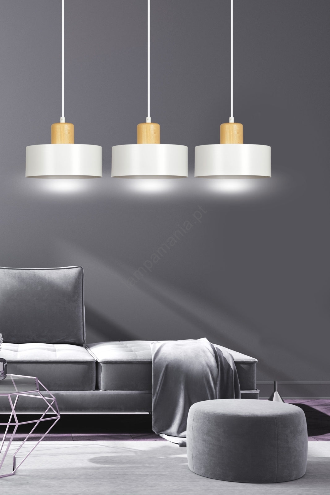 Candeeiro suspenso TORIN 3xE27/15W/230V branco caracteriza-se por um design agradável e funcional.  Uma lâmpada com casquilho E27 é adequada para a iluminação Aqui, pode comprar outras lâmpadas a preços vantajosos. Terá um complemento interessante para a sua casa.
