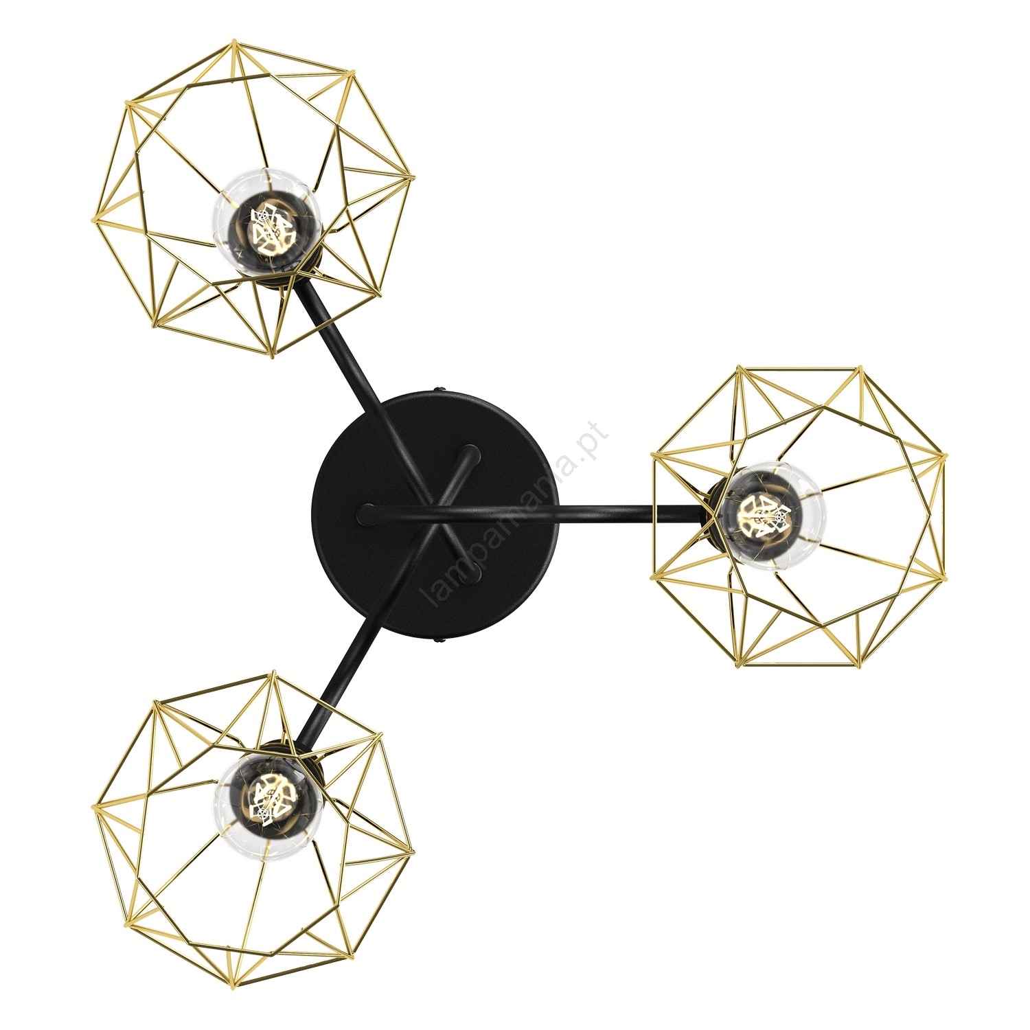 Candelabro montado à superfície BERGEN 3xE27/60W/230V preto/dourado caracteriza-se por um design agradável e funcional.  Uma lâmpada com casquilho E27 é adequada para a iluminação Aqui, pode comprar outras lâmpadas a preços vantajosos. Terá um complemento interessante para a sua casa.