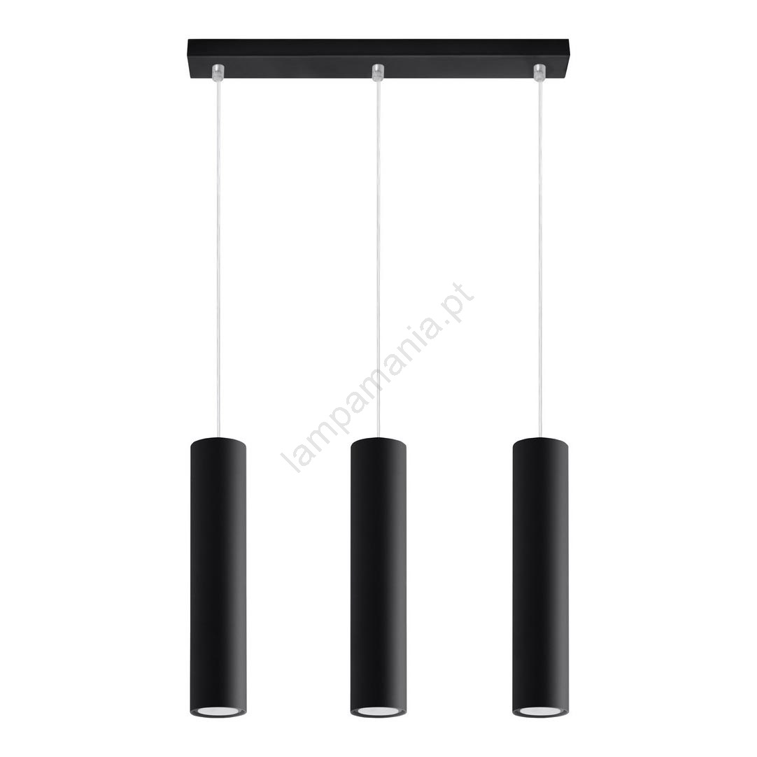 Candeeiro suspenso LAGOS 3 3xGU10/10W/230V preto caracteriza-se por um design agradável e funcional.  Uma lâmpada com casquilho GU10 é adequada para a iluminação Aqui, pode comprar outras lâmpadas a preços vantajosos. Terá um complemento interessante para a sua casa.