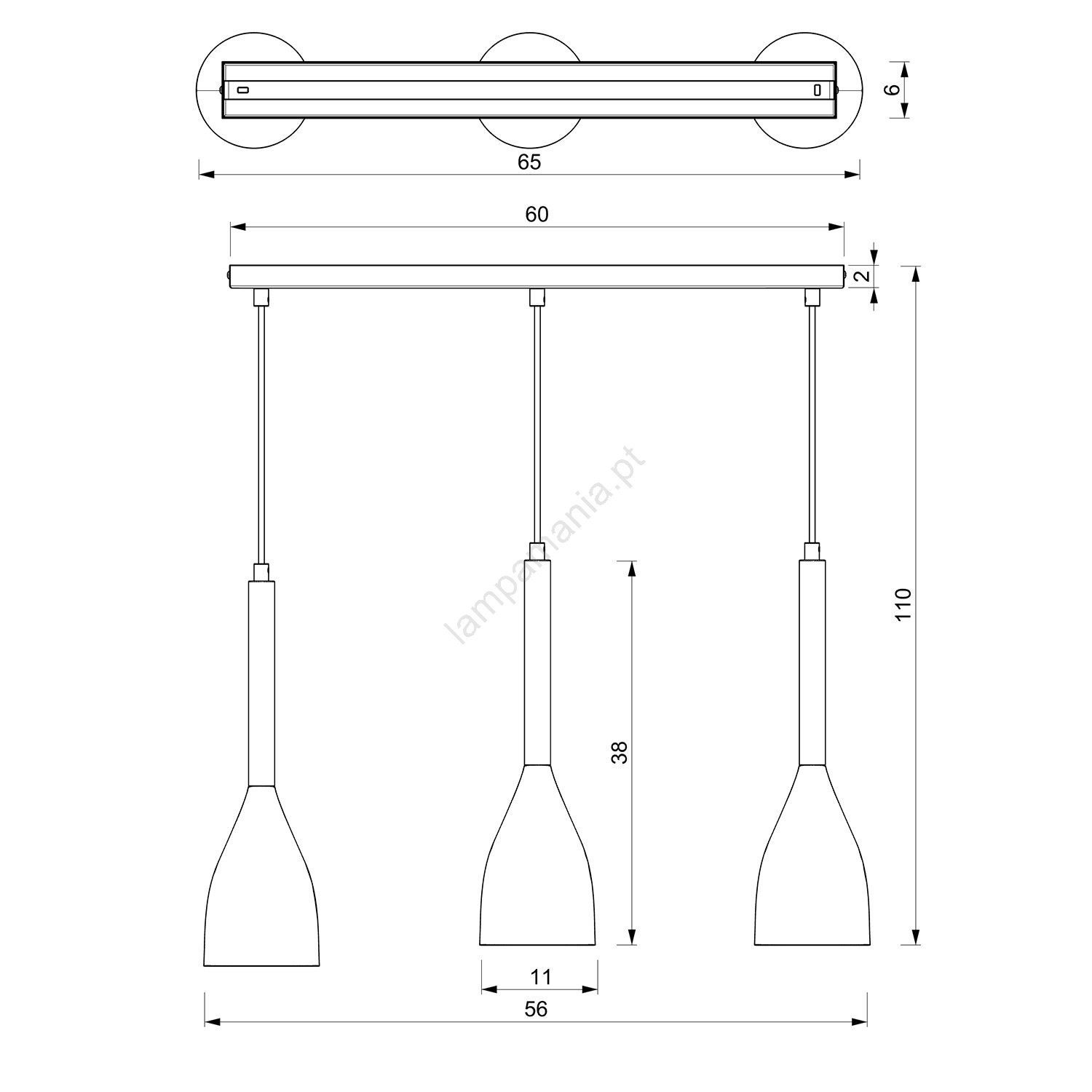 Candelabro num fio MUZA 3xE27/60W/230V caracteriza-se por um design agradável e funcional.  Uma lâmpada com casquilho E27 é adequada para a iluminação Aqui, pode comprar outras lâmpadas a preços vantajosos. Terá um complemento interessante para a sua casa.