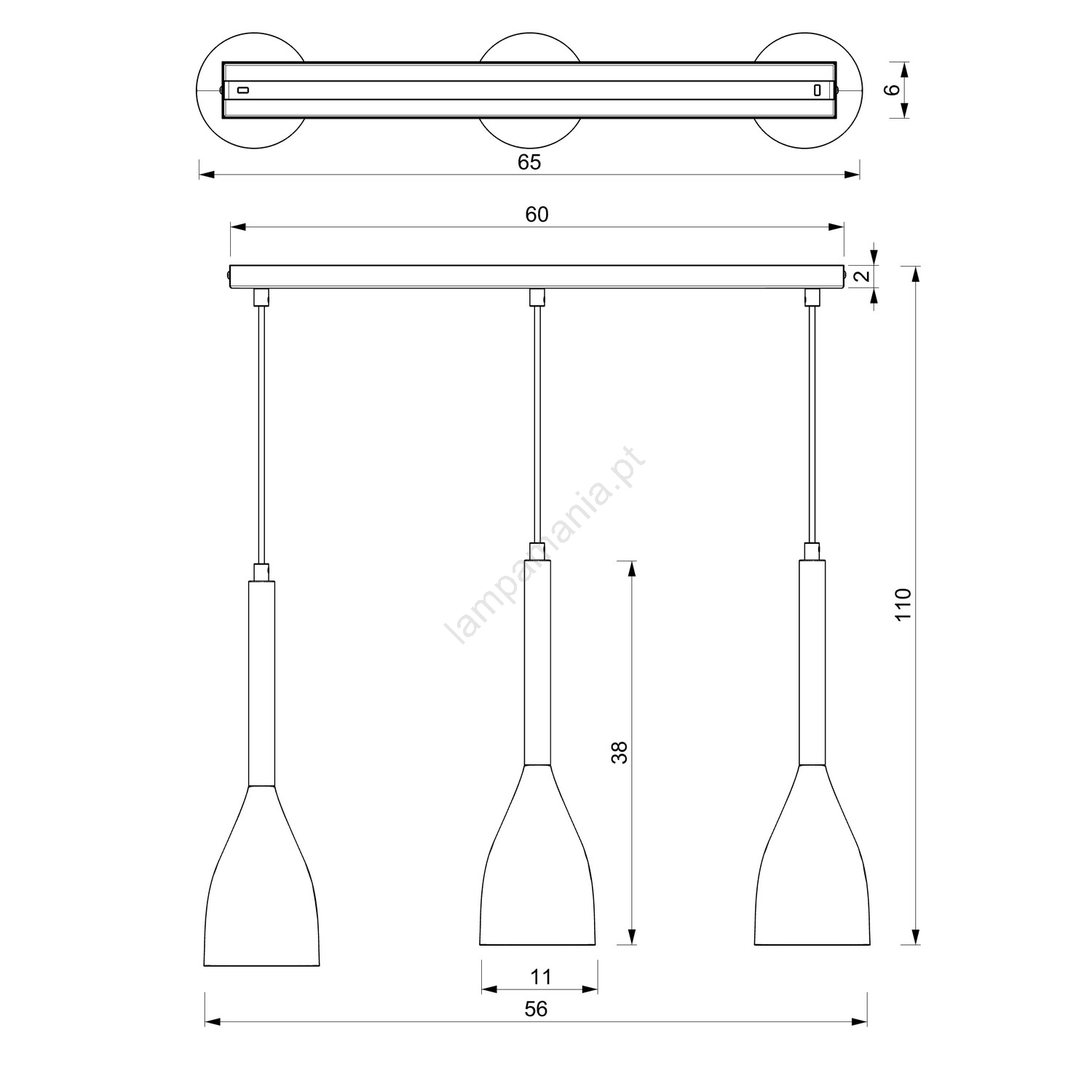 Candelabro num fio MUZA 3xE27/60W/230V caracteriza-se por um design agradável e funcional.  Uma lâmpada com casquilho E27 é adequada para a iluminação Aqui, pode comprar outras lâmpadas a preços vantajosos. Terá um complemento interessante para a sua casa.