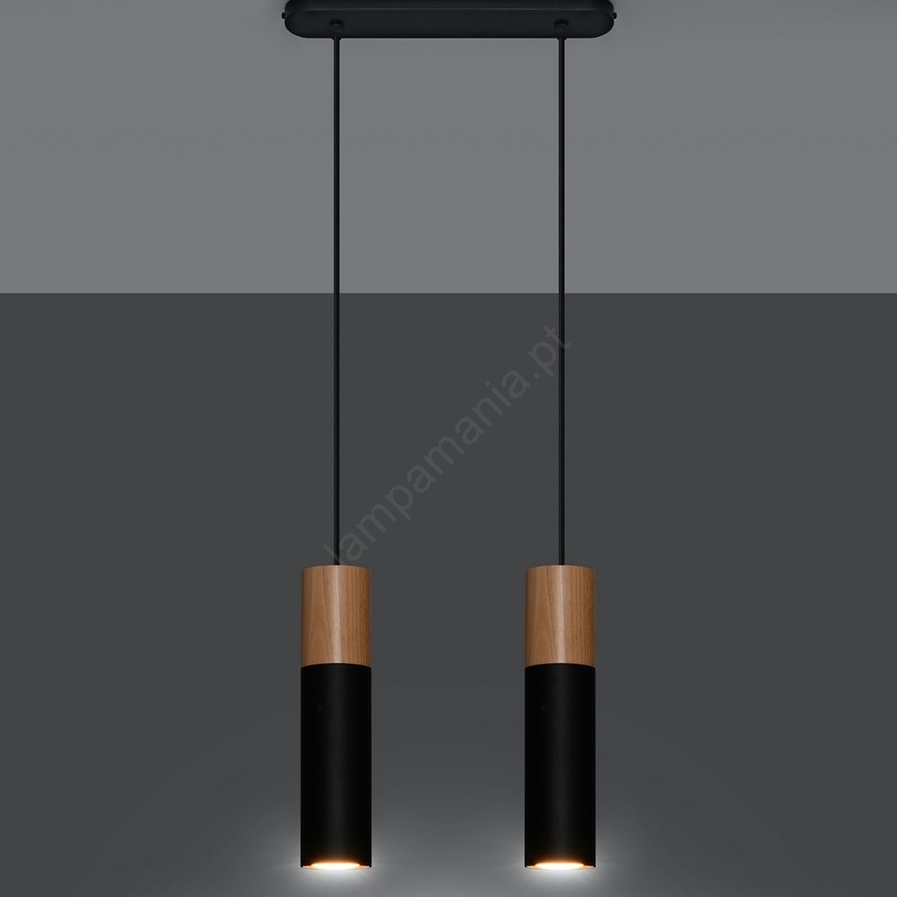 Candelabro suspenso PABLO 2xGU10/40W/230V preto/faia caracteriza-se por um design agradável e funcional.  Uma lâmpada com casquilho GU10 é adequada para a iluminação Aqui, pode comprar outras lâmpadas a preços vantajosos. Terá um complemento interessante para a sua casa.