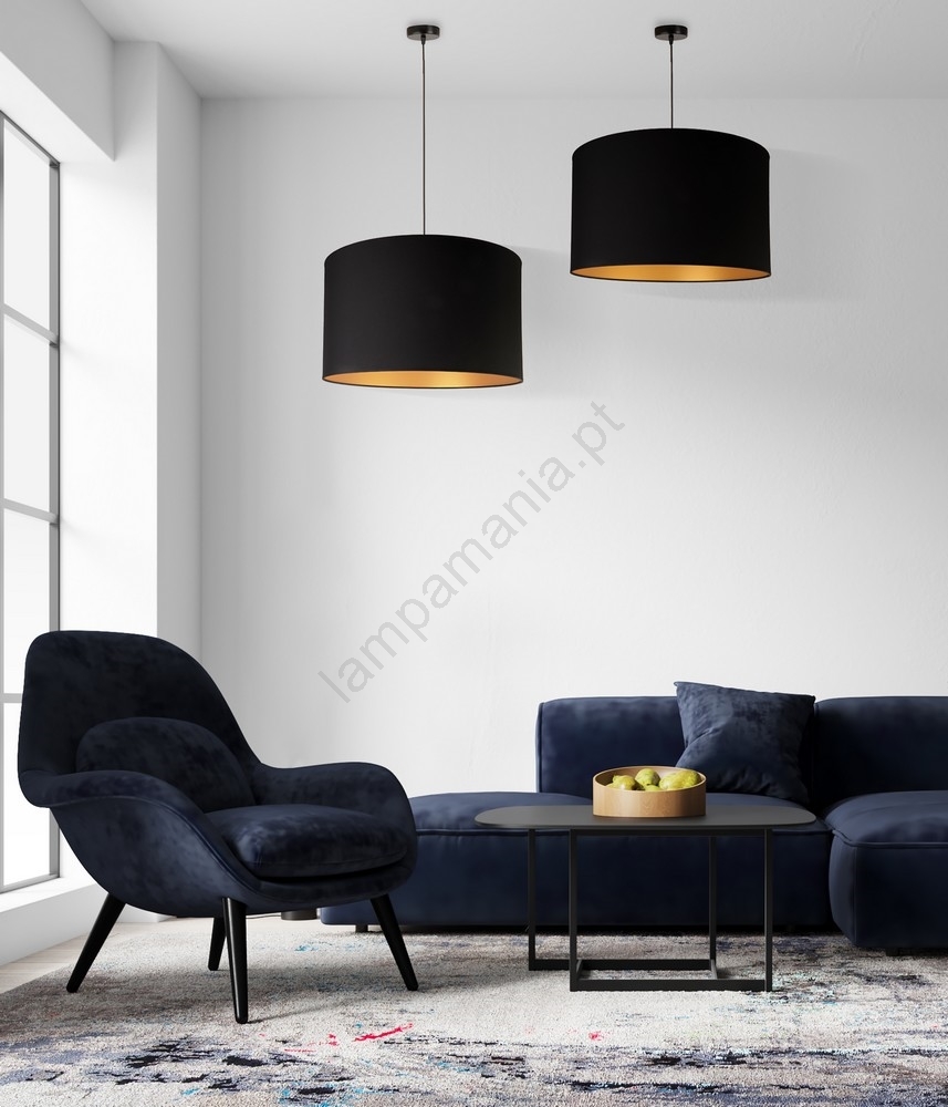 Duolla - Candeeiro suspenso ROLLER 1xE27/40W/230V diâmetro 45 cm preto caracteriza-se por um design agradável e funcional.  Uma lâmpada com casquilho E27 é adequada para a iluminação Aqui, pode comprar outras lâmpadas a preços vantajosos. Terá um complemento interessante para a sua casa.