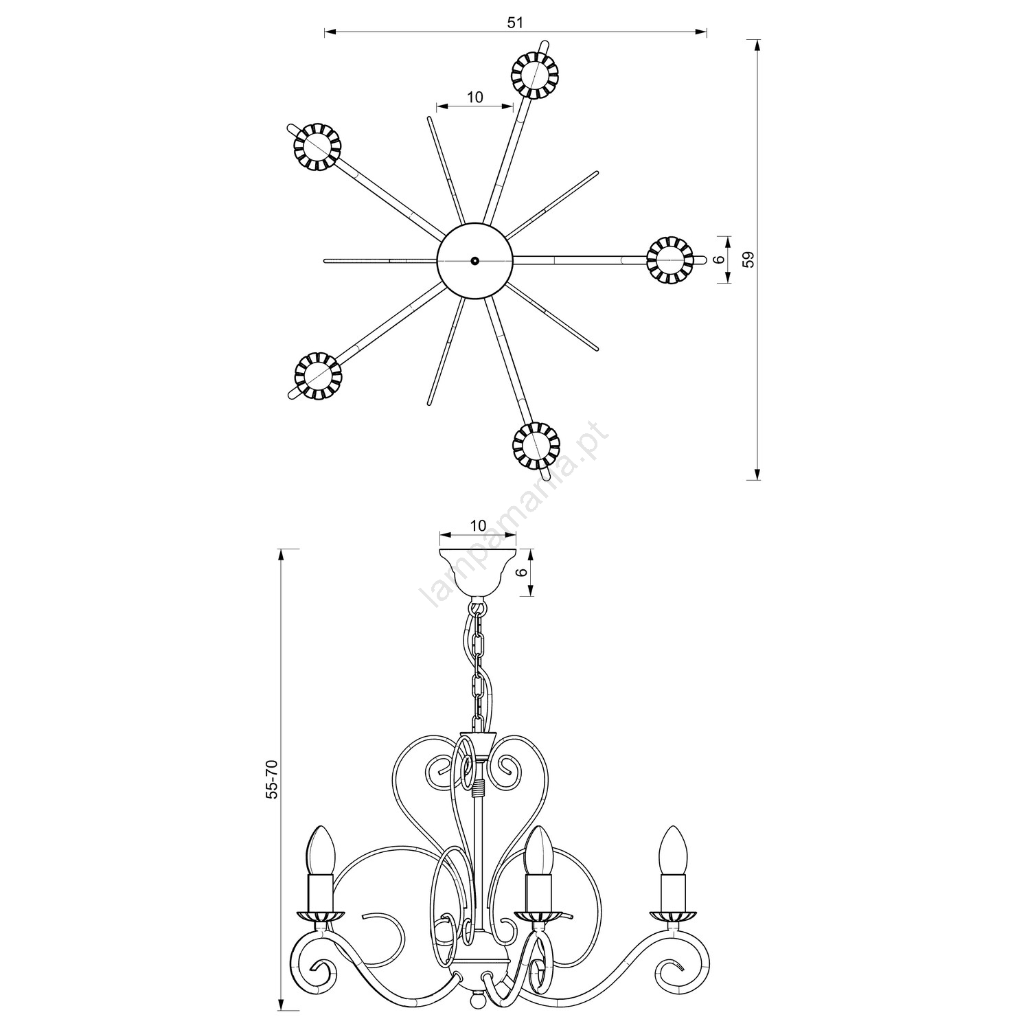 • A altura do lustre é ajustável: de 55 a 70 cm.
