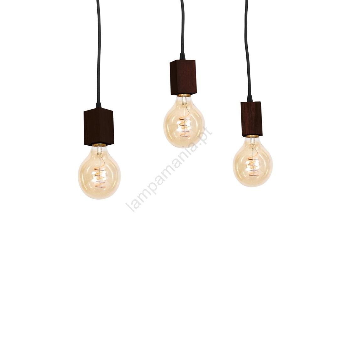 Candelabro pendente JACK 3xE27/40W/230V madeira castanha caracteriza-se por um design agradável e funcional.  Uma lâmpada com casquilho E27 é adequada para a iluminação Aqui, pode comprar outras lâmpadas a preços vantajosos. Terá um complemento interessante para a sua casa.