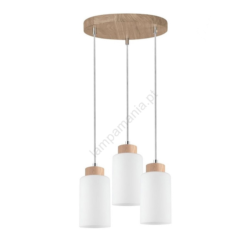 Candeeiro suspenso BOSCO 3xE27/60W/230V carvalho caracteriza-se por um design agradável e funcional.  Uma lâmpada com casquilho E27 é adequada para a iluminação Aqui, pode comprar outras lâmpadas a preços vantajosos. Terá um complemento interessante para a sua casa.