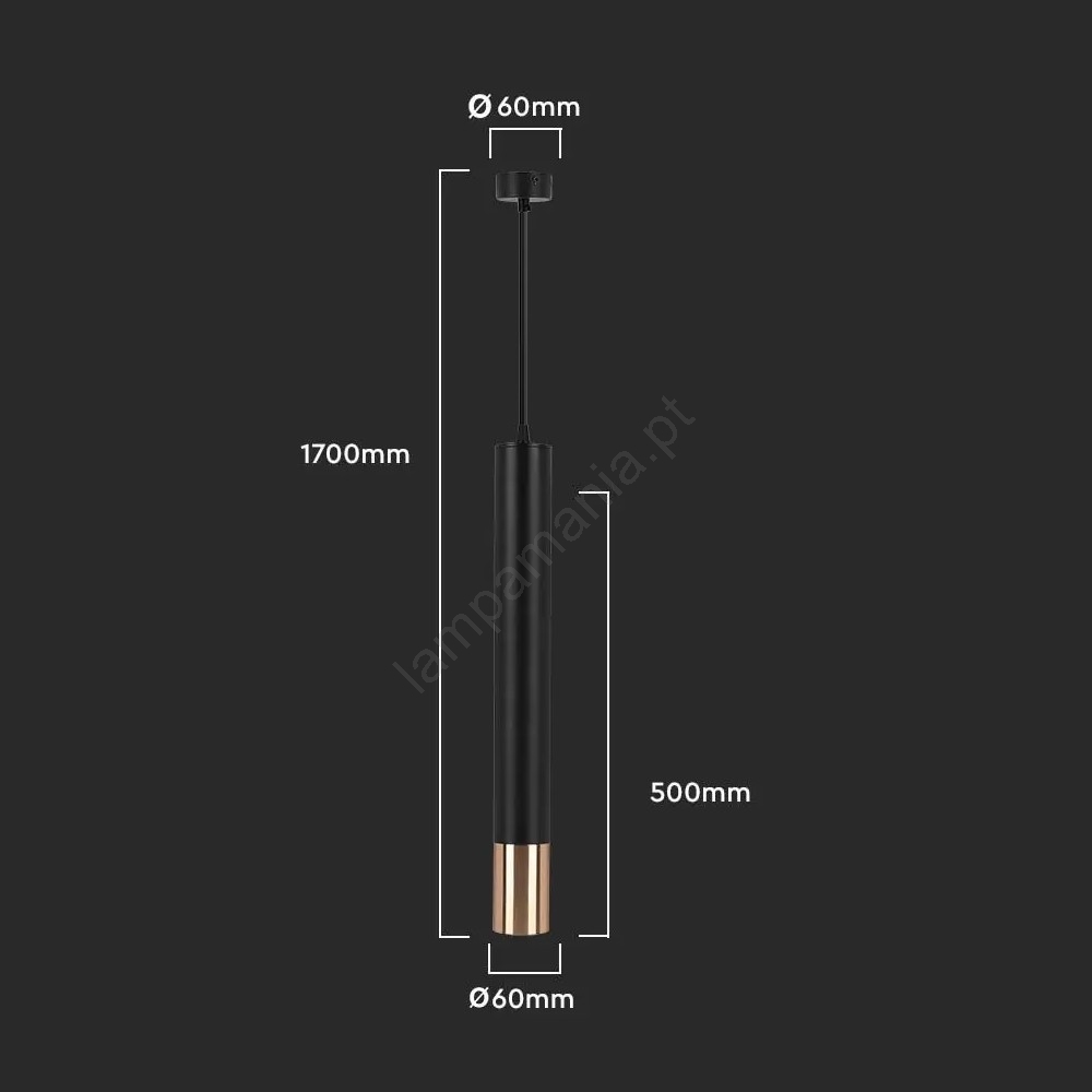 Candelabro suspenso 1xGU10/35W/230V 50 cm preto/dourado caracteriza-se por um design agradável e funcional.  Uma lâmpada com casquilho GU10 é adequada para a iluminação Aqui, pode comprar outras lâmpadas a preços vantajosos. Terá um complemento interessante para a sua casa.