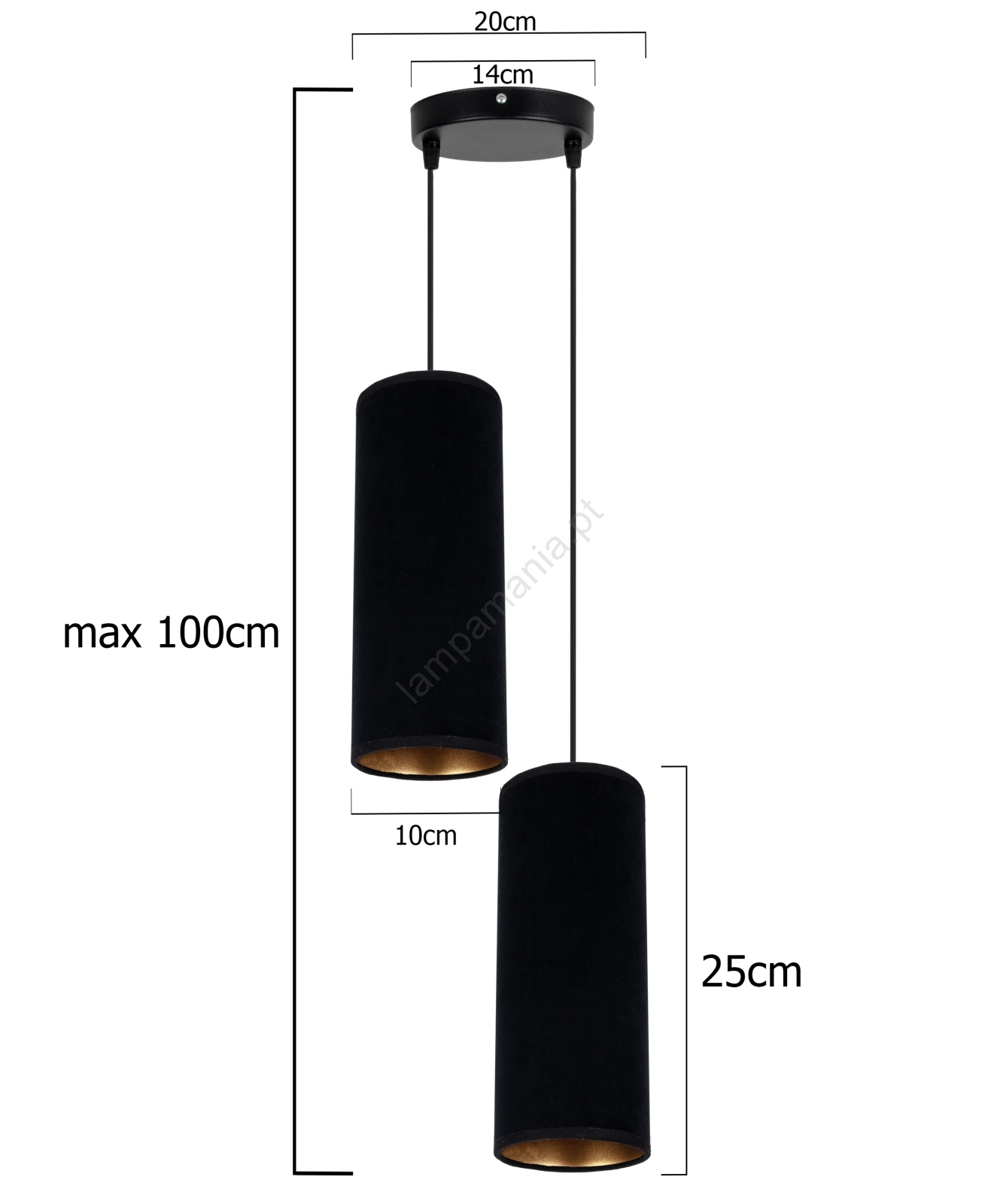 • Candelabro suspenso AVALO 2xE27/60W/230V diâmetro 20 cm preto
