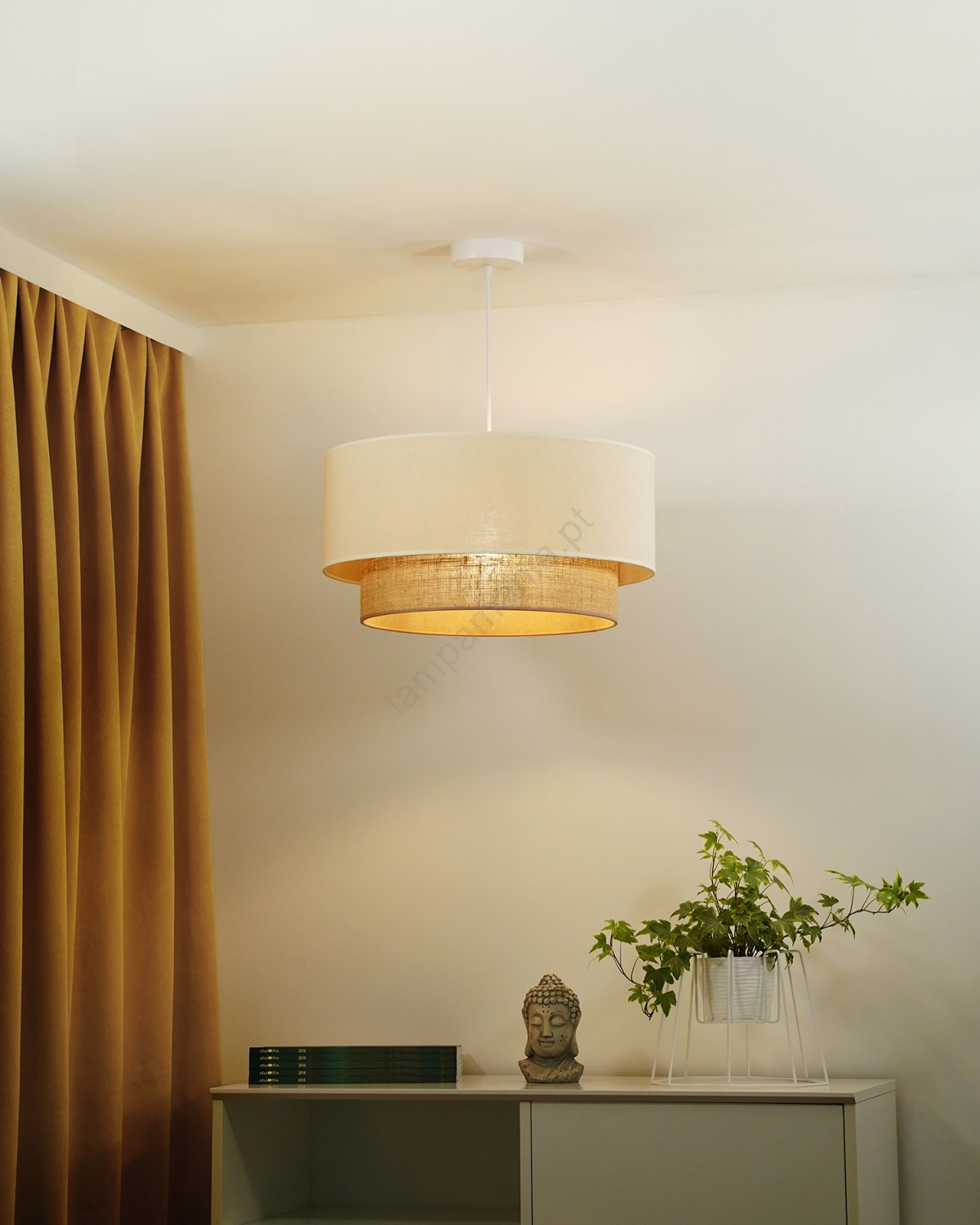 Duolla - Candeeiro suspenso BOHO 1xE27/40W/230V diâmetro 45 cm creme/castanho caracteriza-se por um design agradável e funcional.  Uma lâmpada com casquilho E27 é adequada para a iluminação Aqui, pode comprar outras lâmpadas a preços vantajosos. Terá um complemento interessante para a sua casa.