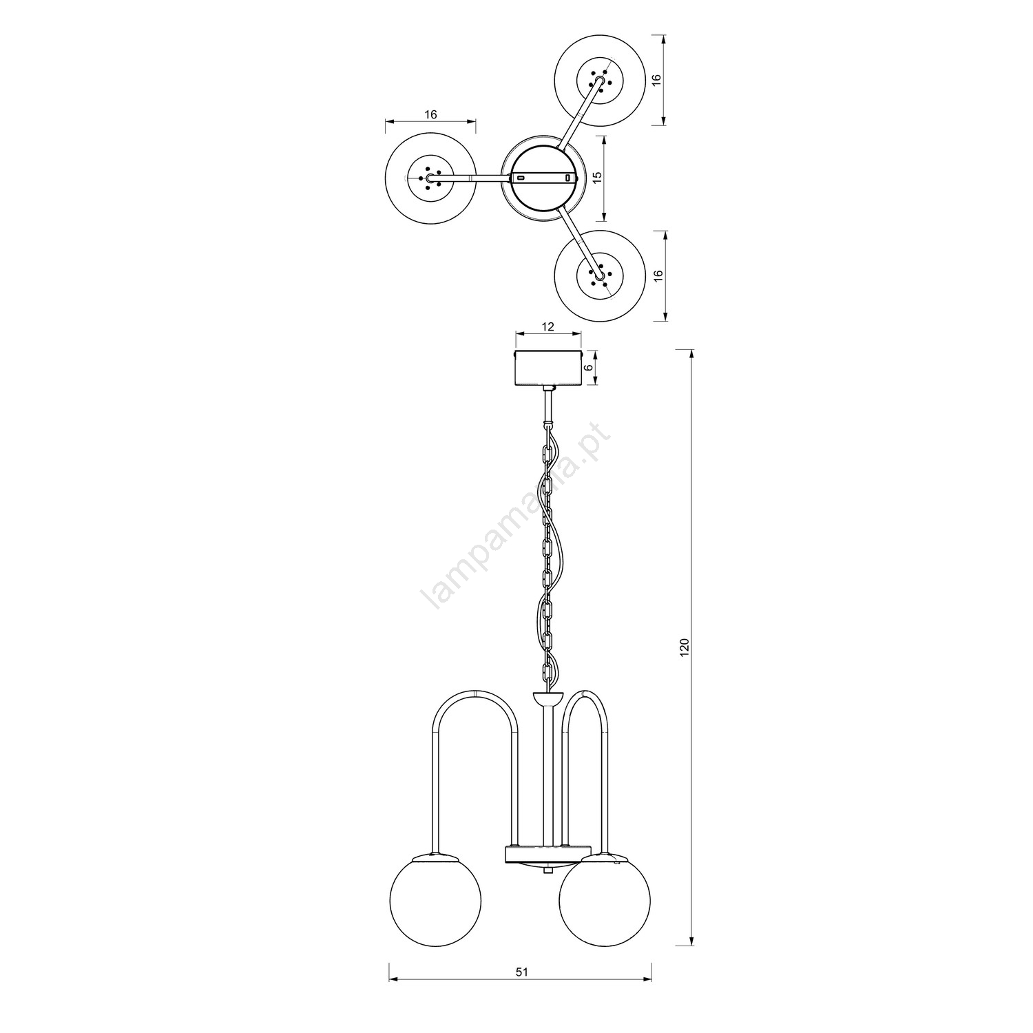 Candelabro suspenso CAMBRIDGE 3xE14/60W/230V preto caracteriza-se por um design agradável e funcional.  Uma lâmpada com casquilho E14 é adequada para a iluminação Aqui, pode comprar outras lâmpadas a preços vantajosos. Terá um complemento interessante para a sua casa.
