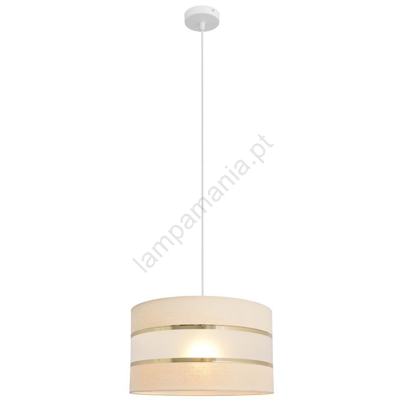 Candelabro suspenso HELEN 1xE27/15W/230V diâmetro 35 cm creme/dourado caracteriza-se por um design agradável e funcional.  Uma lâmpada com casquilho E27 é adequada para a iluminação Aqui, pode comprar outras lâmpadas a preços vantajosos. Terá um complemento interessante para a sua casa.