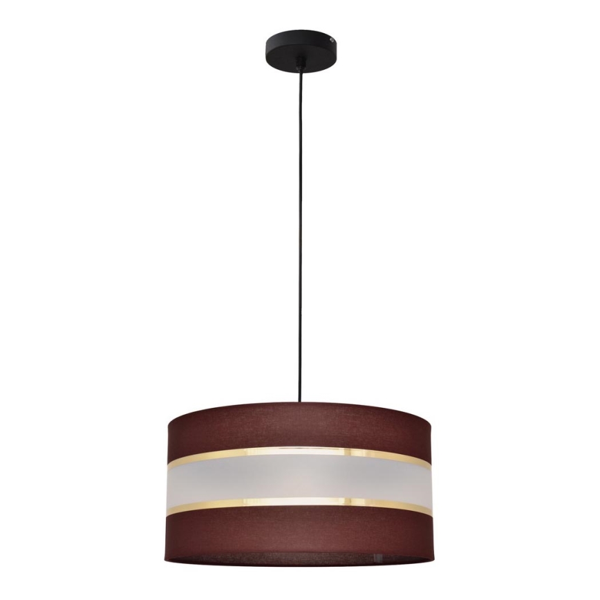 Candelabro suspenso HELEN 1xE27/15W/230V diâmetro 40 cm castanho/preto/dourado caracteriza-se por um design agradável e funcional.  Uma lâmpada com casquilho E27 é adequada para a iluminação Aqui, pode comprar outras lâmpadas a preços vantajosos. Terá um complemento interessante para a sua casa.