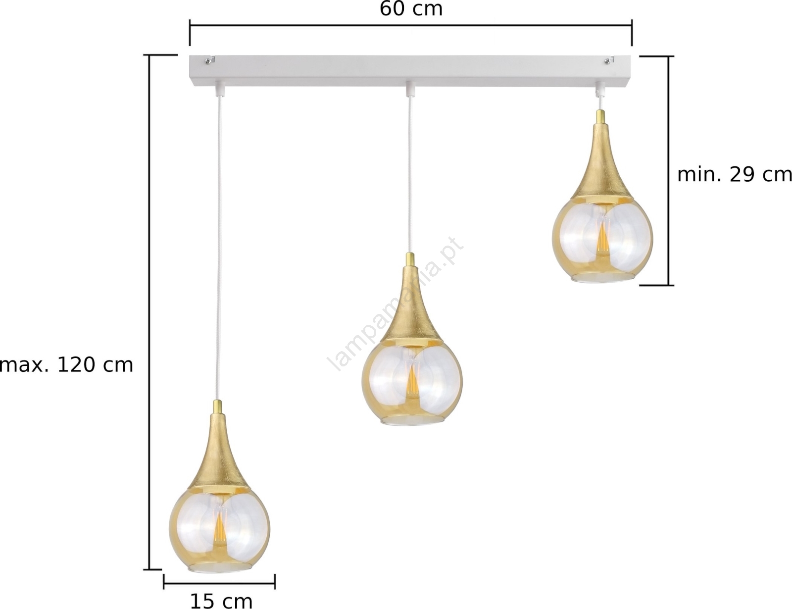 Candelabro suspenso LACRIMA WHITE 3xE27/60W/230V