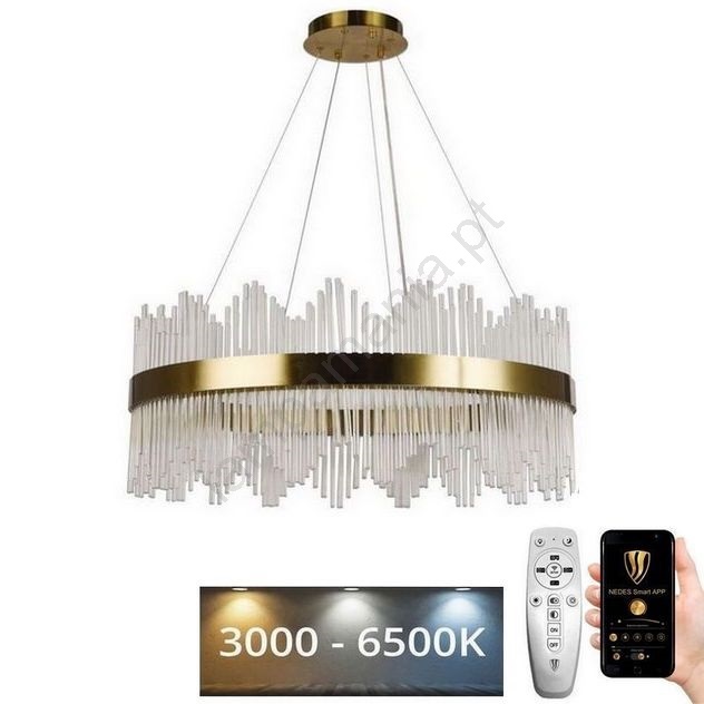 • Lustre de cristal LED regulável em cabo LED/110W/230V 3000-6500K dourado + comando à distância