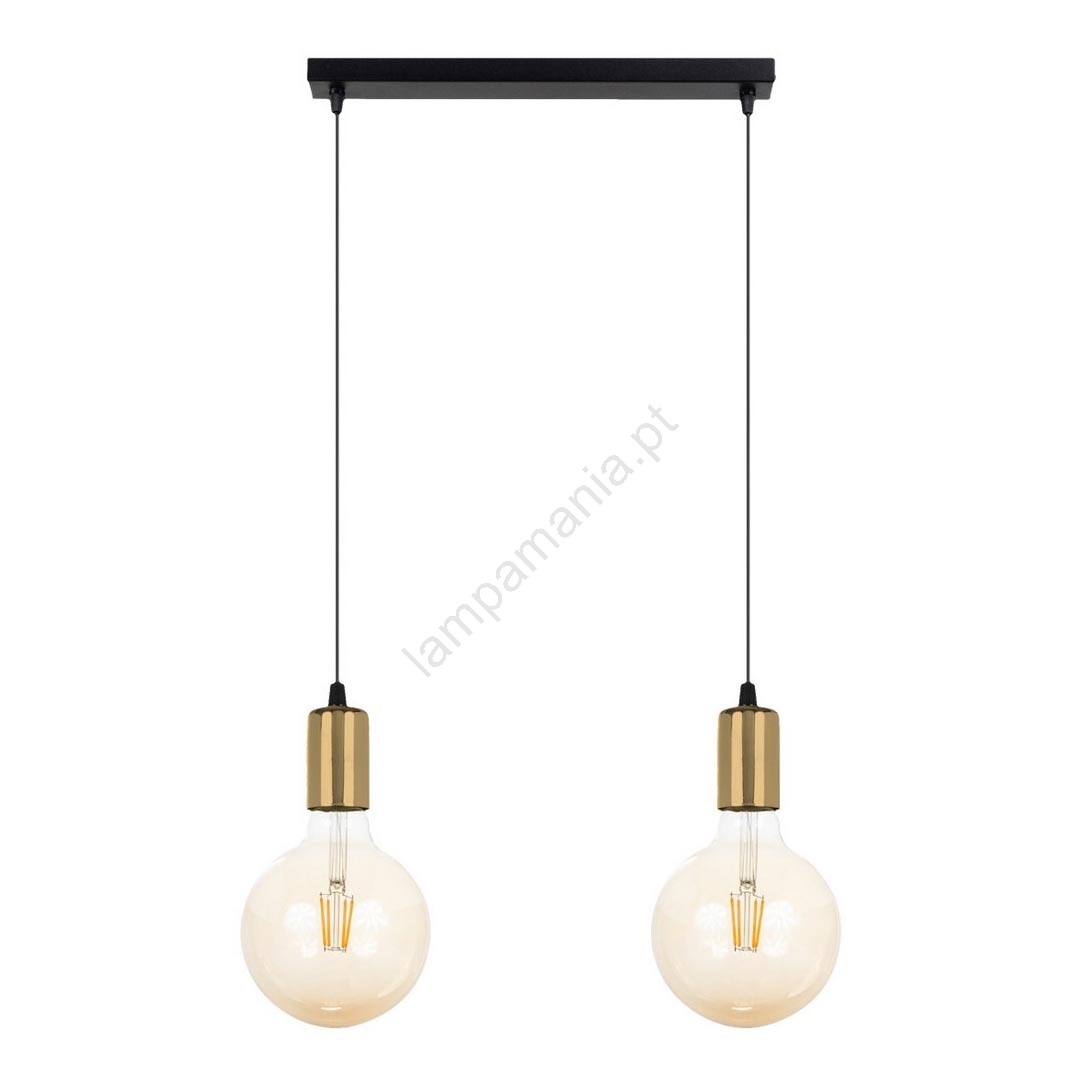 Candelabro suspenso MIROS 2xE27/60W/230V preto/dourado caracteriza-se por um design agradável e funcional.  Uma lâmpada com casquilho E27 é adequada para a iluminação Aqui, pode comprar outras lâmpadas a preços vantajosos. Terá um complemento interessante para a sua casa.