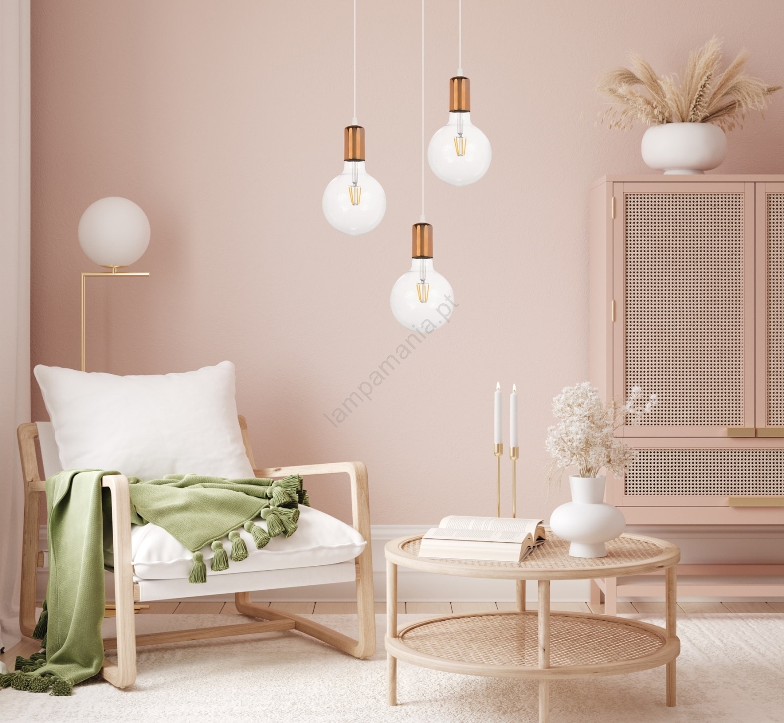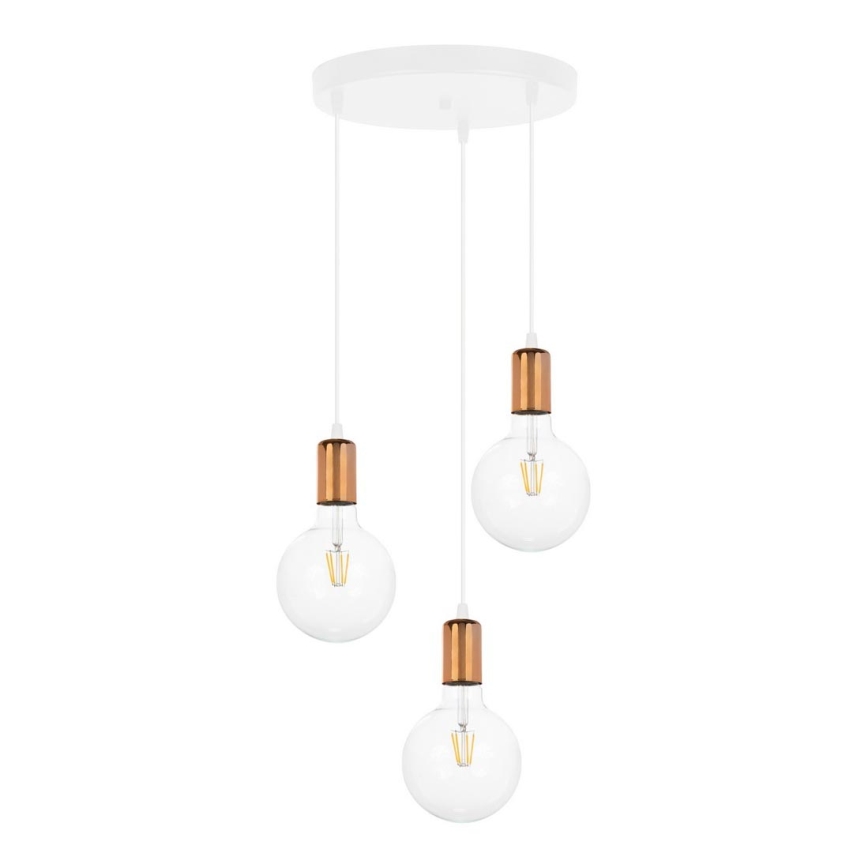 Candelabro suspenso MIROS 3xE27/60W/230V redondo branco/cobre
