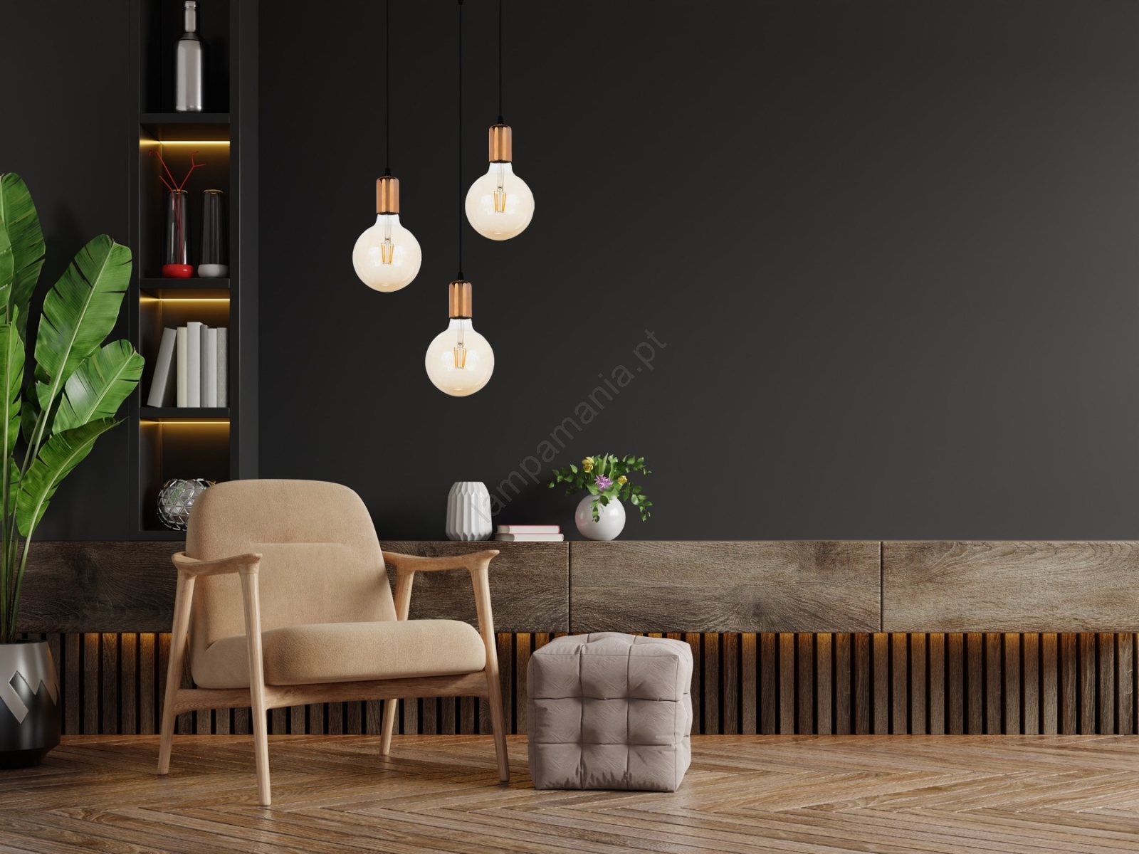 Candelabro suspenso MIROS 3xE27/60W/230V redondo preto/cobre caracteriza-se por um design agradável e funcional.  Uma lâmpada com casquilho E27 é adequada para a iluminação Aqui, pode comprar outras lâmpadas a preços vantajosos. Terá um complemento interessante para a sua casa.