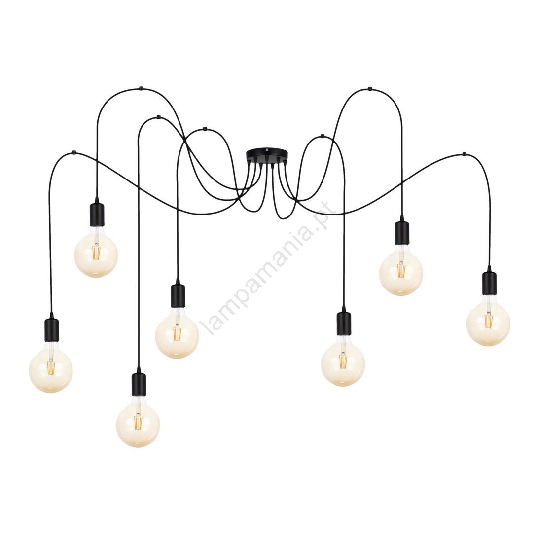 • Candeeiro suspenso MIROS 7xE27/60W/230V aranha preto