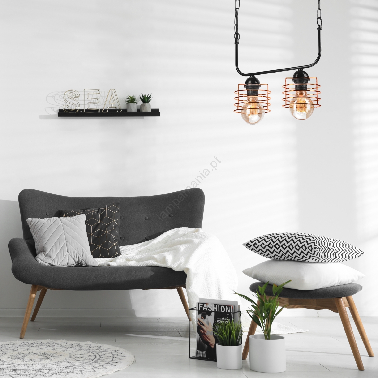 Candelabro suspenso MORGAN 2xE27/60W/230V preto/cobre caracteriza-se por um design agradável e funcional.  Uma lâmpada com casquilho E27 é adequada para a iluminação Aqui, pode comprar outras lâmpadas a preços vantajosos. Terá um complemento interessante para a sua casa.