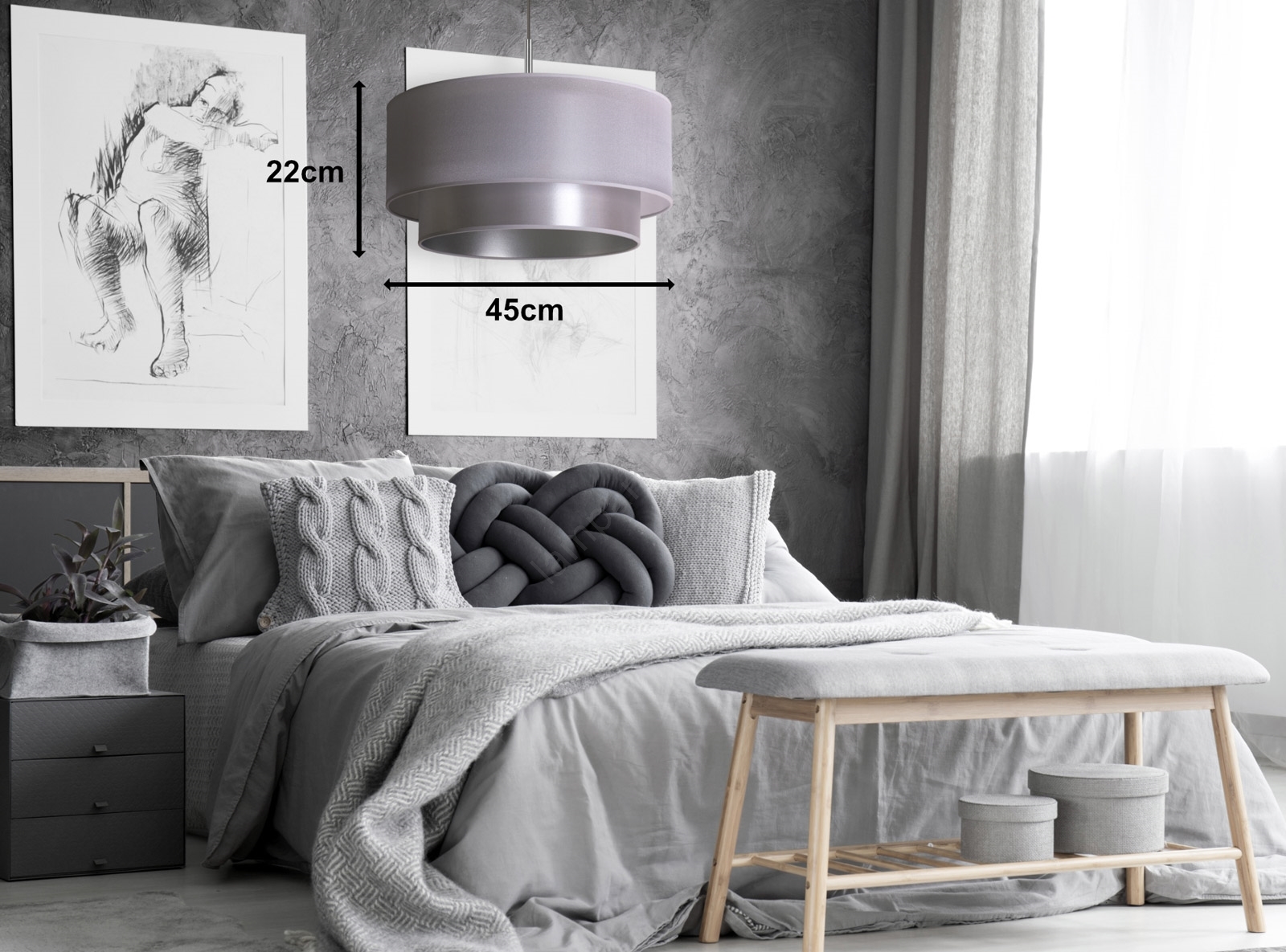 Duolla - Candelabro suspenso NANTES 1xE27/15W/230V diâmetro 45 cm prateado caracteriza-se por um design agradável e funcional.  Uma lâmpada com casquilho E27 é adequada para a iluminação Aqui, pode comprar outras lâmpadas a preços vantajosos. Terá um complemento interessante para a sua casa.
