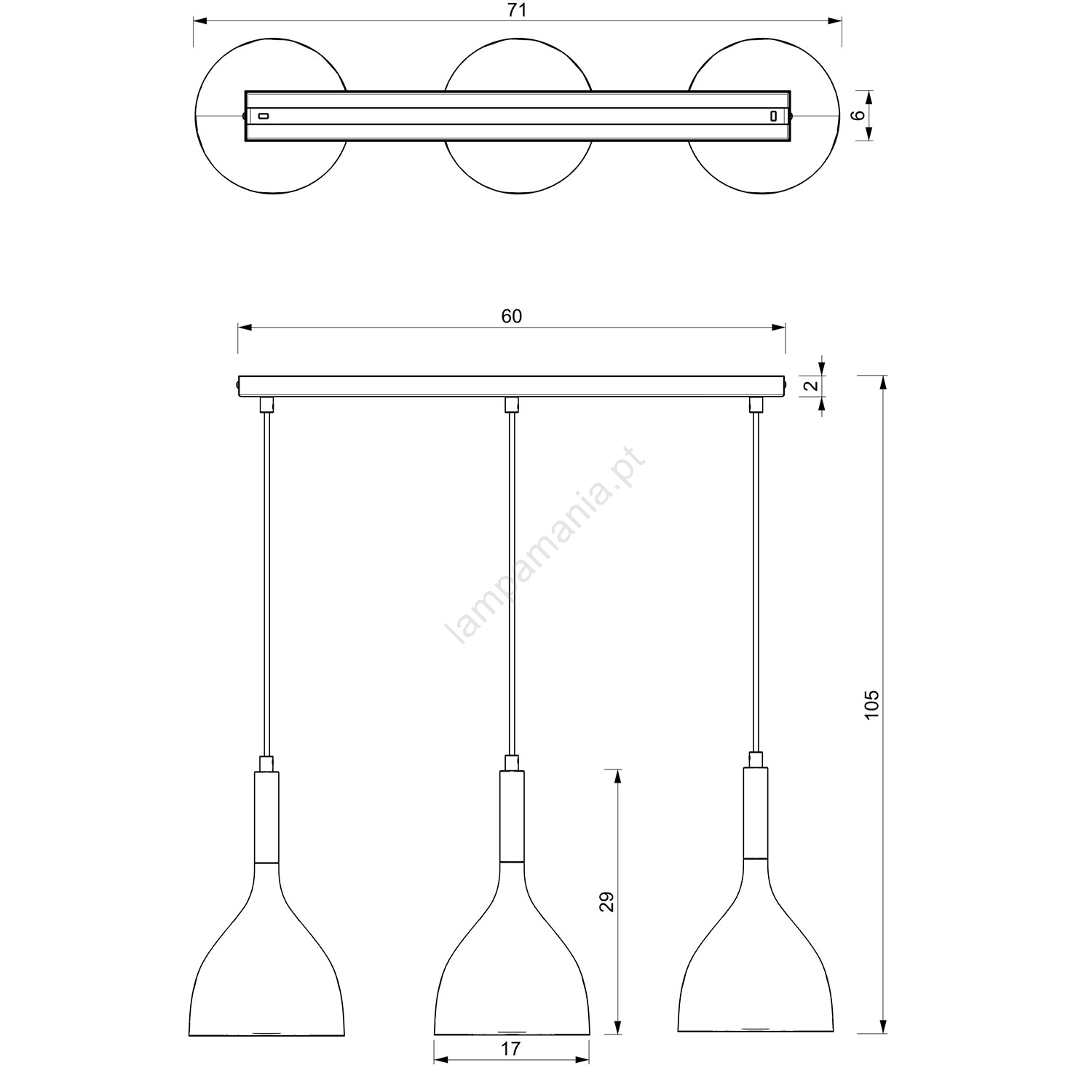 Candeeiro suspenso NOAK 3xE27/15W/230V branco/dourado caracteriza-se por um design agradável e funcional.  Uma lâmpada com casquilho E27 é adequada para a iluminação Aqui, pode comprar outras lâmpadas a preços vantajosos. Terá um complemento interessante para a sua casa.