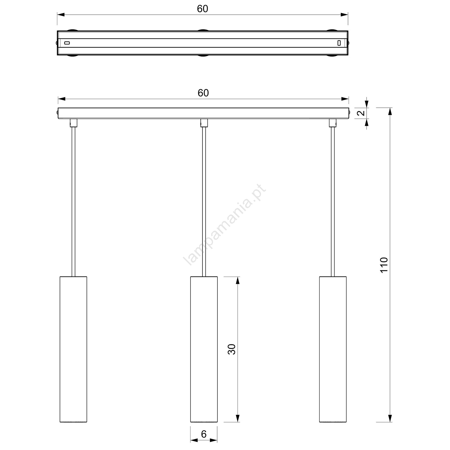 • Candelabro suspenso RAITO 3xGU10/8W/230V preto