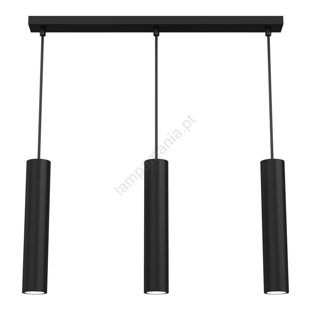 Candelabro suspenso RAITO 3xGU10/8W/230V preto caracteriza-se por um design agradável e funcional.  Uma lâmpada com casquilho GU10 é adequada para a iluminação Aqui, pode comprar outras lâmpadas a preços vantajosos. Terá um complemento interessante para a sua casa.