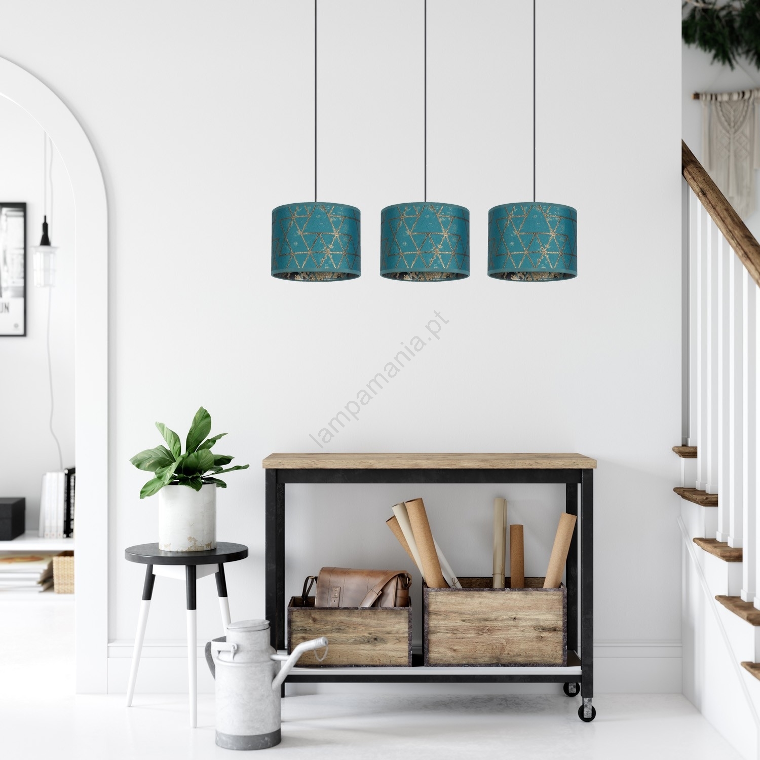 • Candelabro suspenso REZO 3xE27/60W/230V turquesa