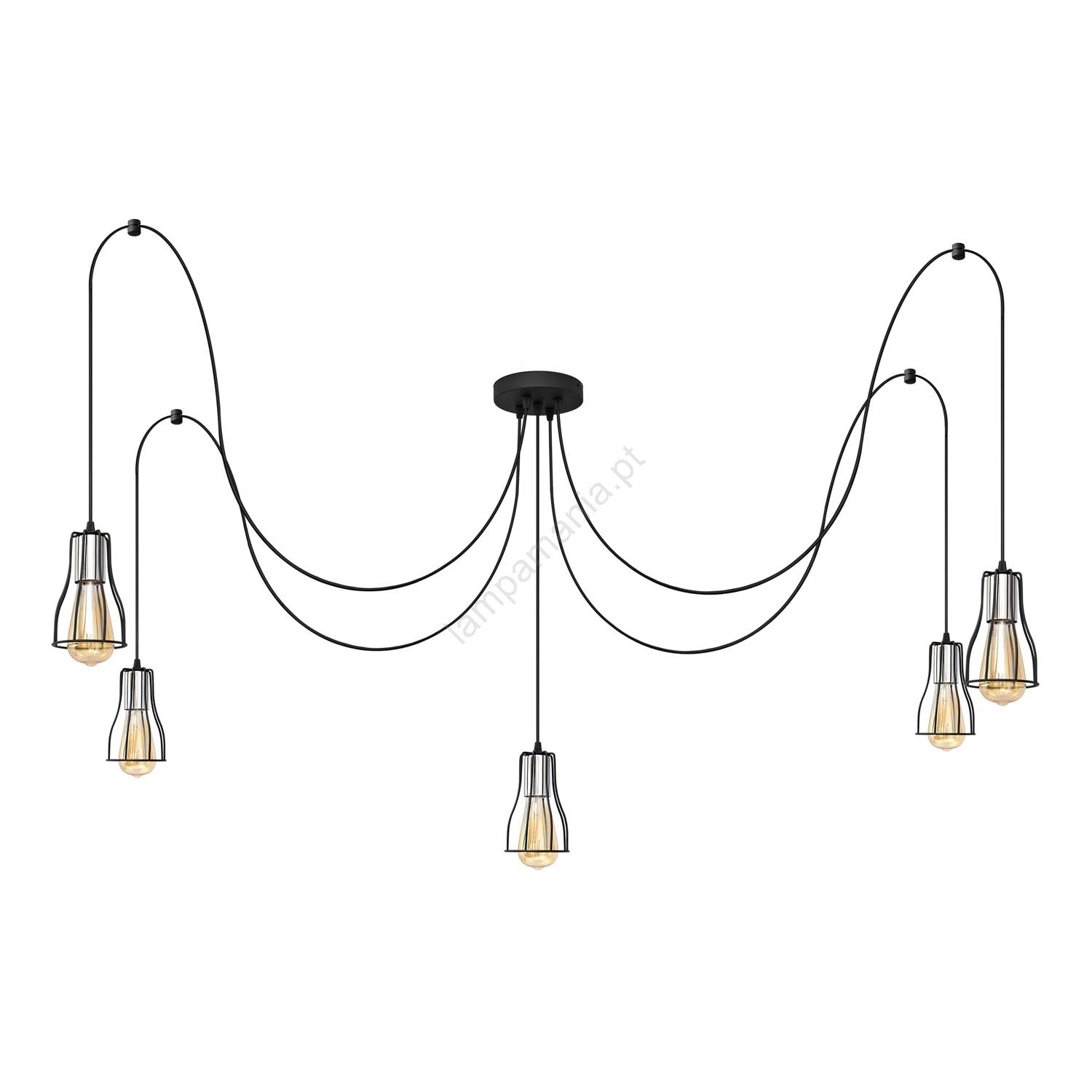 Candeeiro suspenso TUBE 5xE27/15W/230V aranha preto/cromado brilhante caracteriza-se por um design agradável e funcional.  Uma lâmpada com casquilho E27 é adequada para a iluminação Aqui, pode comprar outras lâmpadas a preços vantajosos. Terá um complemento interessante para a sua casa.