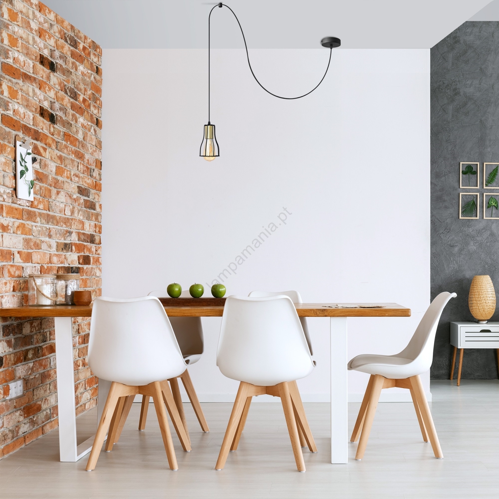 Candelabro suspenso TUBE LONG 1xE27/15W/230V preto/dourada caracteriza-se por um design agradável e funcional.  Uma lâmpada com casquilho E27 é adequada para a iluminação Aqui, pode comprar outras lâmpadas a preços vantajosos. Terá um complemento interessante para a sua casa.
