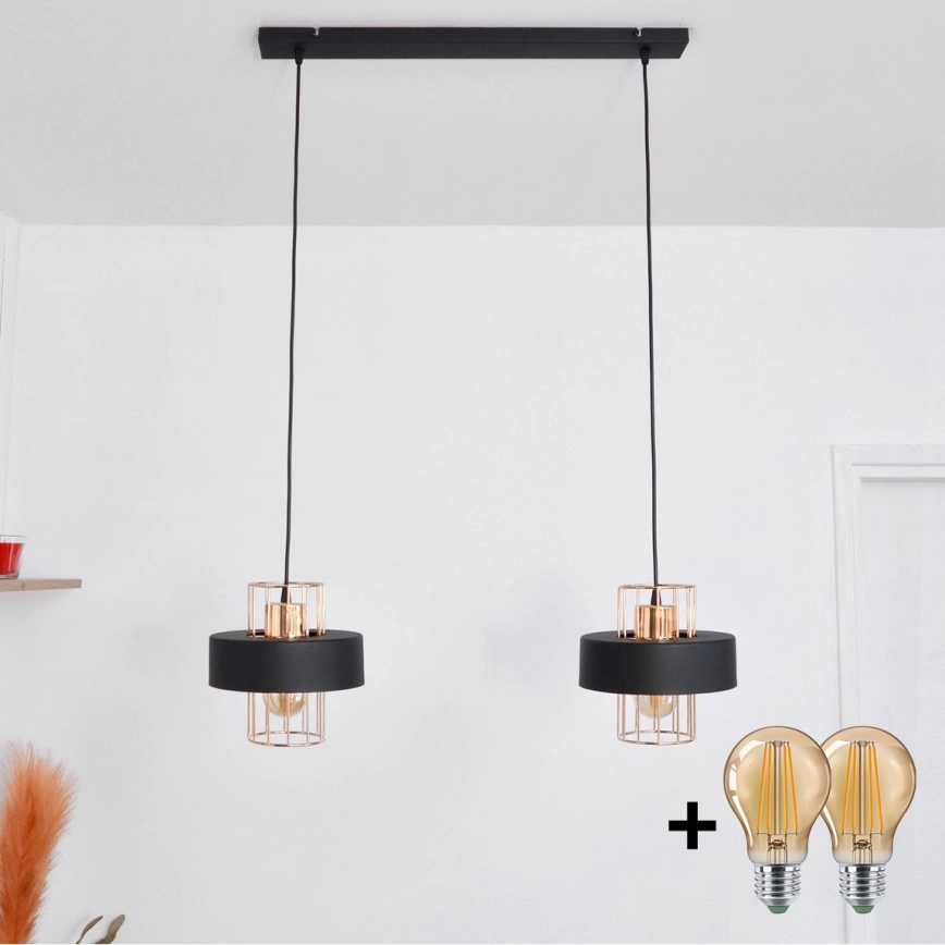 LED Candelabro suspenso LED VOLTA 2xE27/15W/230V preto/dourada