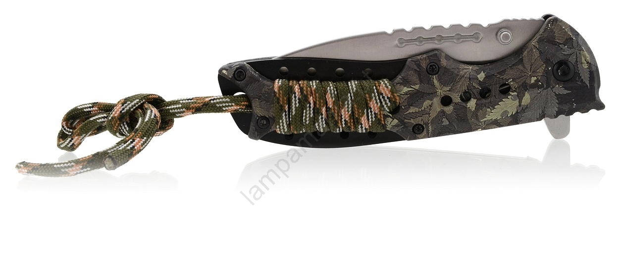 • Faca leve com estampa de folhas de cânhamo e camuflagem florestal.