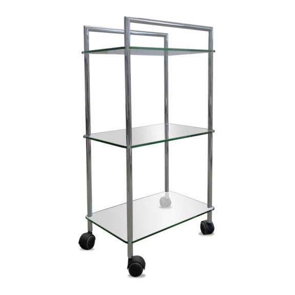 • Carrinho de casa de banho moderno com acabamento prateado elegante.